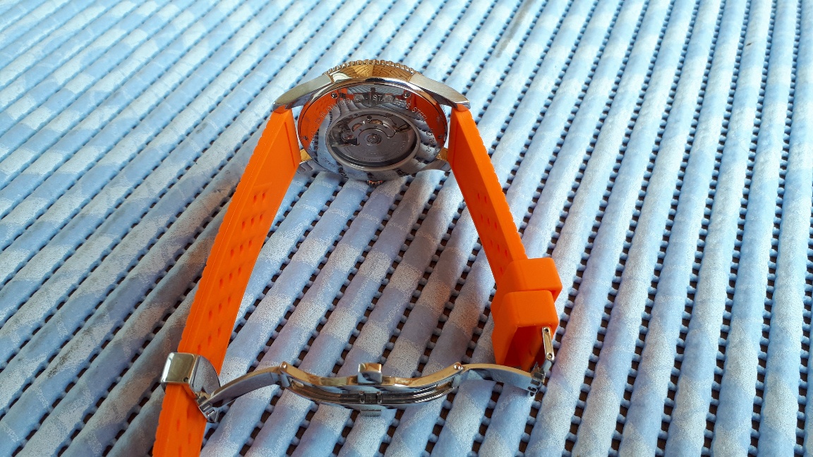 Единственный недостаток - небольшая потертость/вмятинка слева внизу сбоку на корпусе, вообще незаметно при ношении. Где приложился, сам не знаю. Постарался отразить на последнем фото.