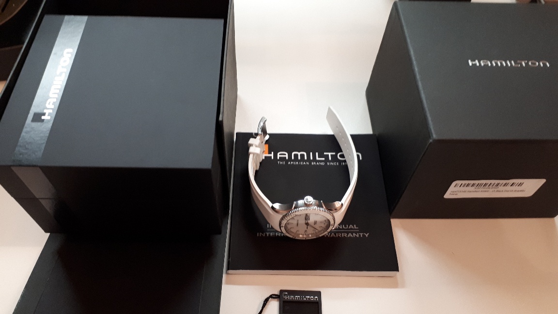 Hamilton из серии Jazzmaster, Seaview Day Date Auto с белым, из натурального перламутра! циферблатом, никогда не выцветет на солнце!