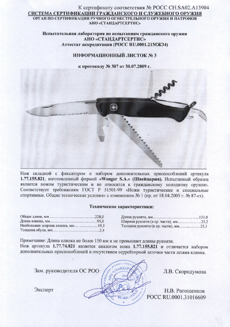 Данный нож является туристическим и не относится к холодному оружию (см. прилагаемый информационный листок).