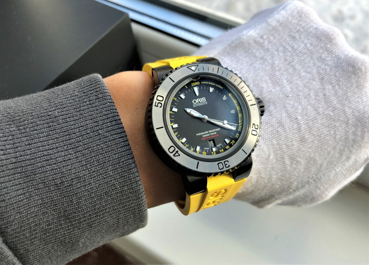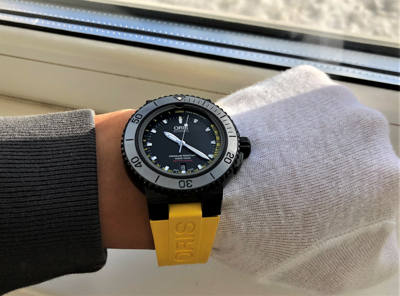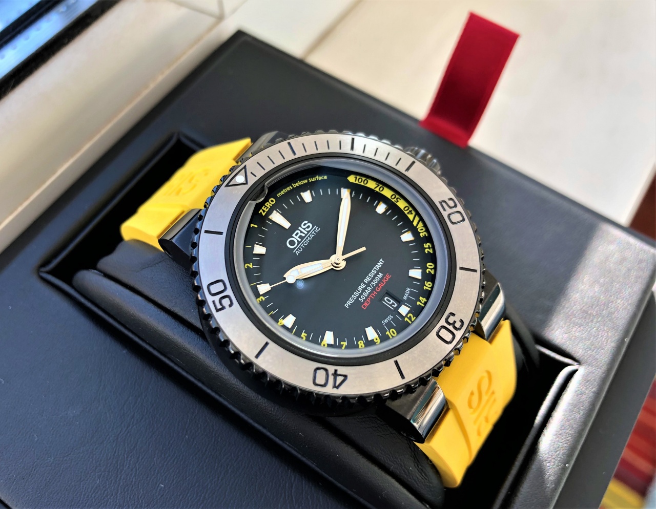 Оформление: Часы запатентованной конструкции являются первыми часами, предназначенными для измерения глубины погружения при помощи сапфирового стекла специальной формы, причём при измерении вода проникает внутрь часов. Двояковыпуклое стекло с антибликовым покрытием, вольфрамовый безель, завинчивающаяся задняя крышка со специальной гравировкой, запас хода на 38 часов.