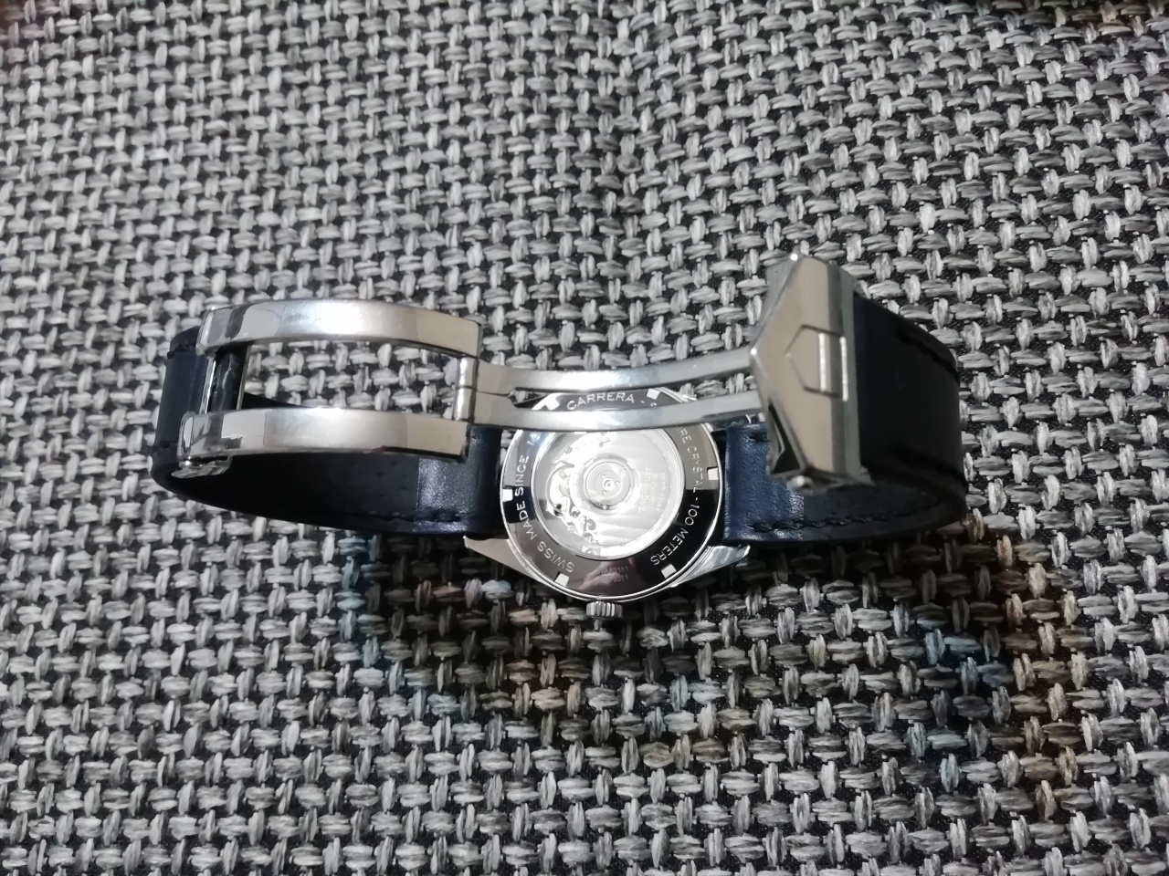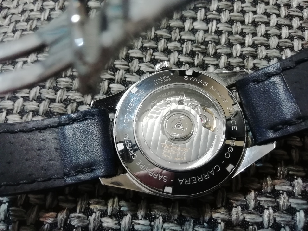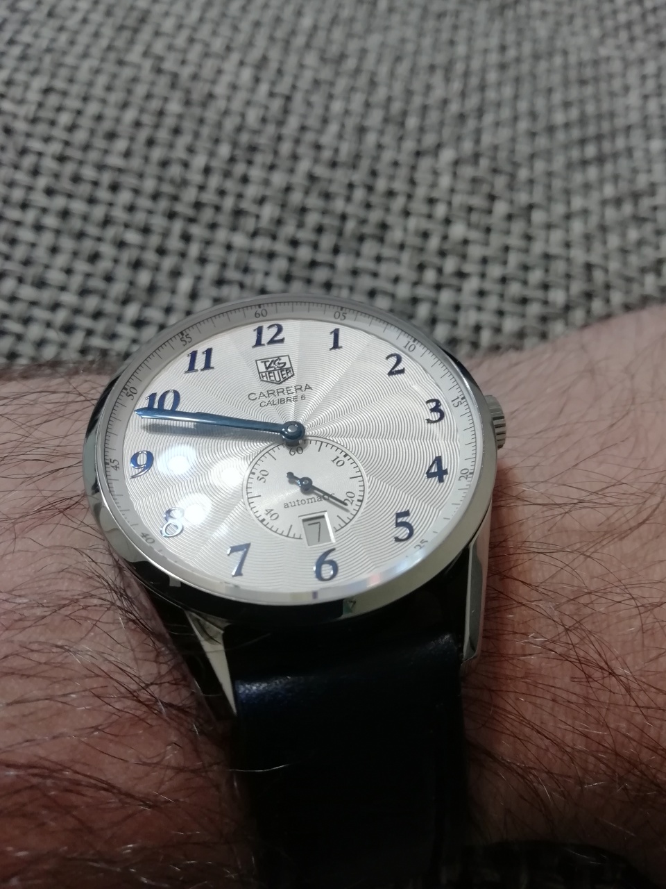 Часы Tag Heuer Carrera Heritage Calibre 6 воплощают 150-летнюю часовую традицию TAG Heuer и напоминают об утонченной элегантности минувшей эпохи. Циферблат с отделкой в традиционной технике «flinque» представляет собой настоящее произведение искусства арабские вороненные цифры, вороненные стрелки меняющие цвет от ярко-синего до черного. Окошко даты в положении 6 часов, вынесенная малая секундная стрелка в положении 6 часов, завинчивающаяся заводная коронка с логотипом Tag Heuer на лицевой стороне.