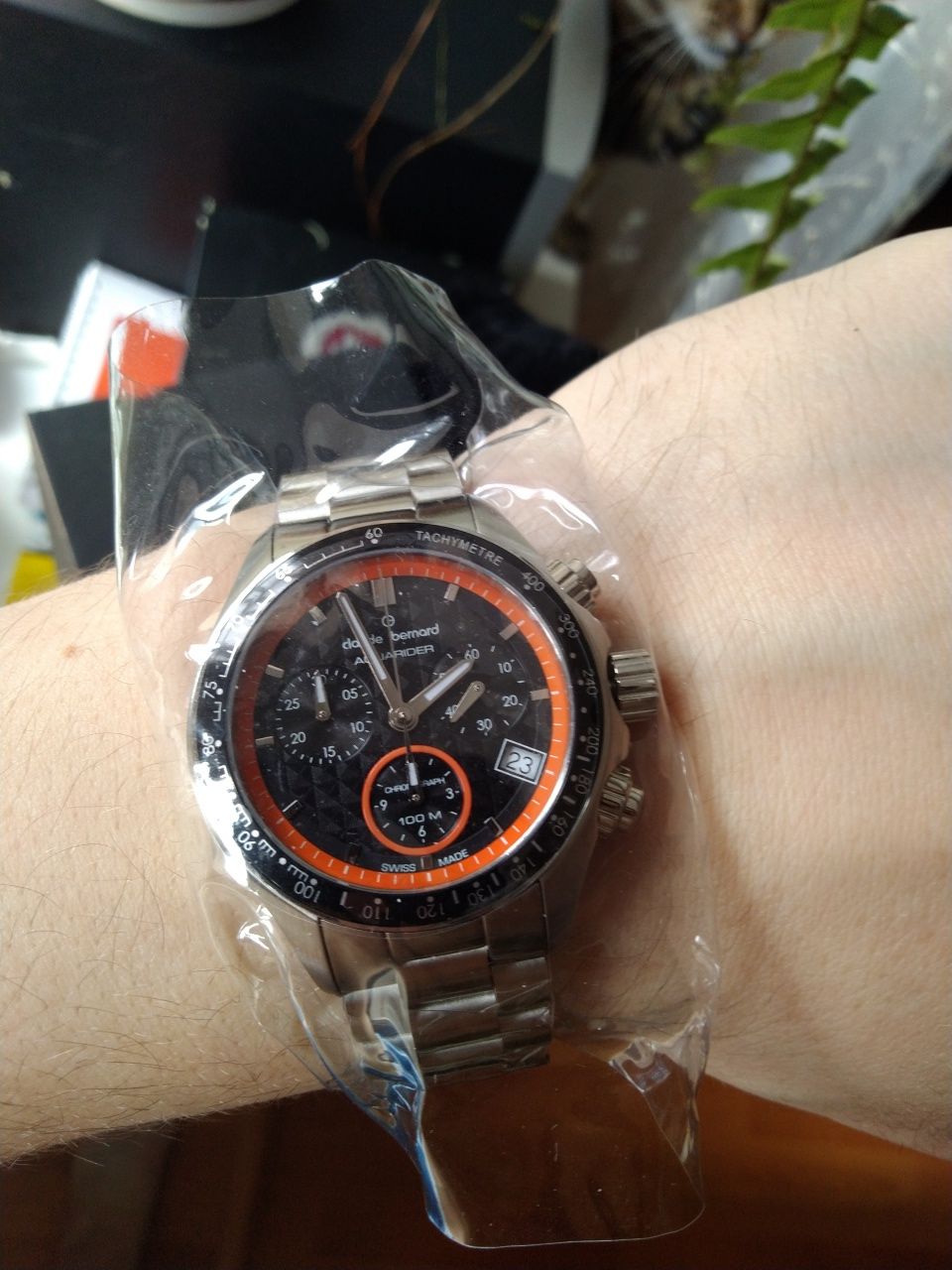 Безель с черным PVD покрытием, с тахиметром.