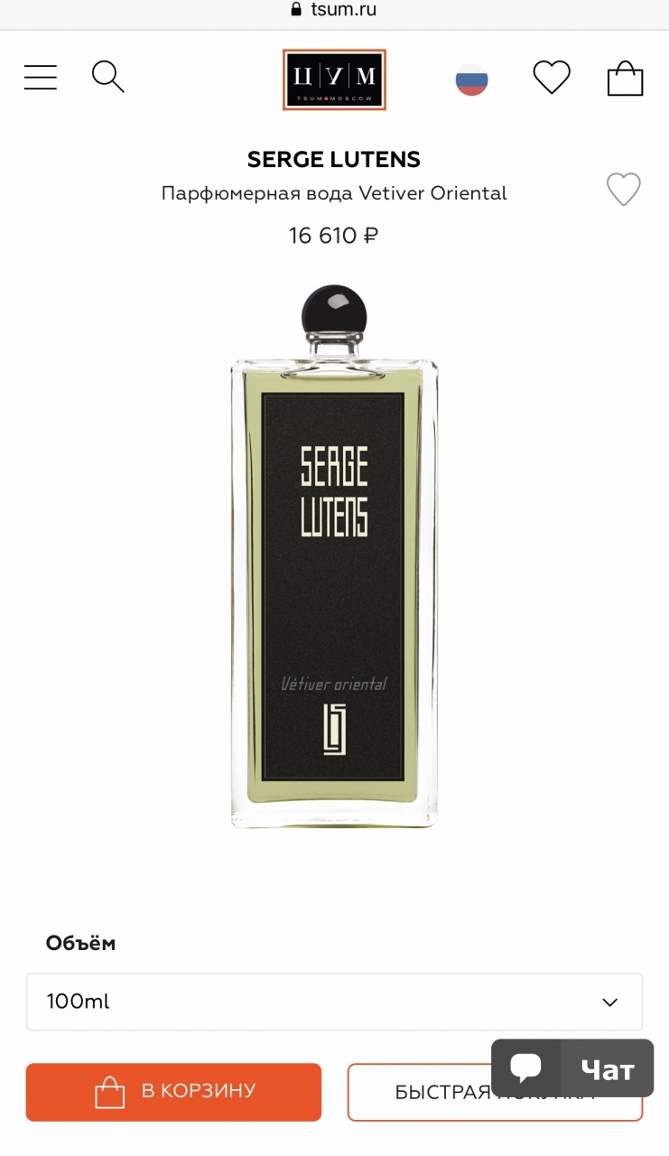 SERGE LUTENS Vetiver Oriental Eau De Parfum 100ml. Новый.