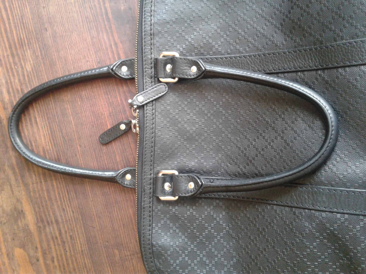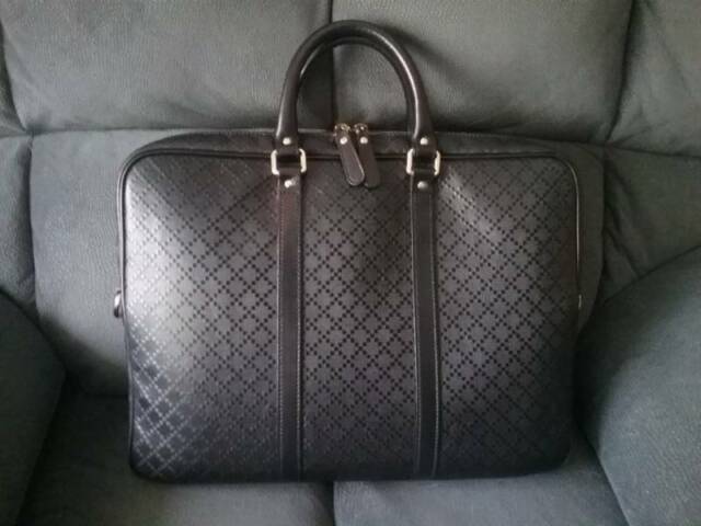 Предлагаю Вашему вниманию оригинальную сумку\портфель (briefcase,laptop bag) линии Diamante.Черная кожа,не ПВХ канвас. Diamante очень элегантно выглядит,не как "орущая" и моментально узнаваемая монограмма Guccissima(которую чаще всего подделывают),не говоря уже про нынешние сумки эпохи Алессандро Микеле. Сумка ношена,но состояние очень хорошее (см.фото).Внутри один большой карман на молнии и 3 накладных кармана.Двухсторонняя молния работает без нареканий. Ширина в самом широком месте 46,ширина по дну 41,5,высота 30см,глубина 9,5см. Прошу учесть,что замеры сделаны с пустой сумки. Плечевого ремня и замочка нет. Только сумка и пыльник. Сумку покупал в корнере марки ЦУМа примерно за 140.000 руб.Сумка в области,вышлю без проблем,порядочность гарантирую! На сайте есть положительные отзывы.По всем вопросам прошу писать в л\с. Цена 15.000руб. P.S.Прошу извинить за фото.