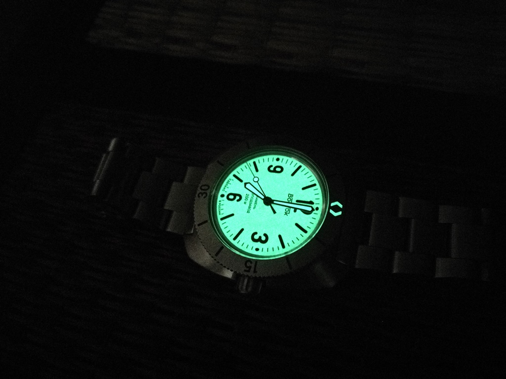 полностью люминесцентный! А также установлены тёмные, контрастные стрелки.