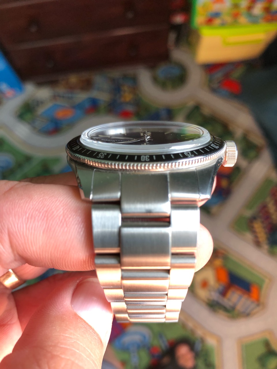 Состояние отличное, АА указал только из-за уменьшенного браслета и небольшой непонятной потертости на сатине. На фото видно. Комплект полный, дополнительные звенья в наличии. Механизм Sellita, ход +3 сек/сутки. Довольно тонкие для механических дайверов и очень удобно сидят на руке. Гарантия до ноября 2023 года.