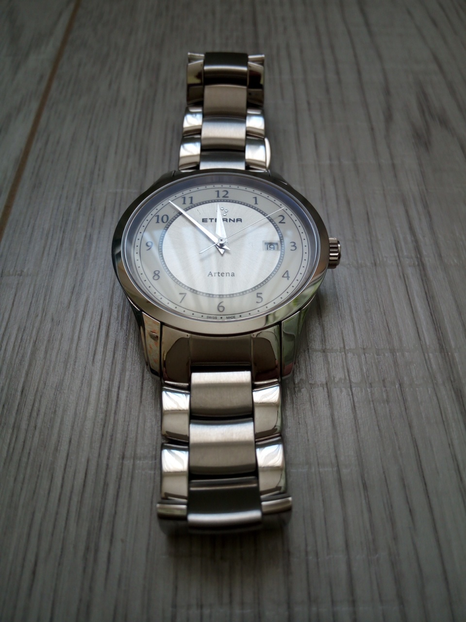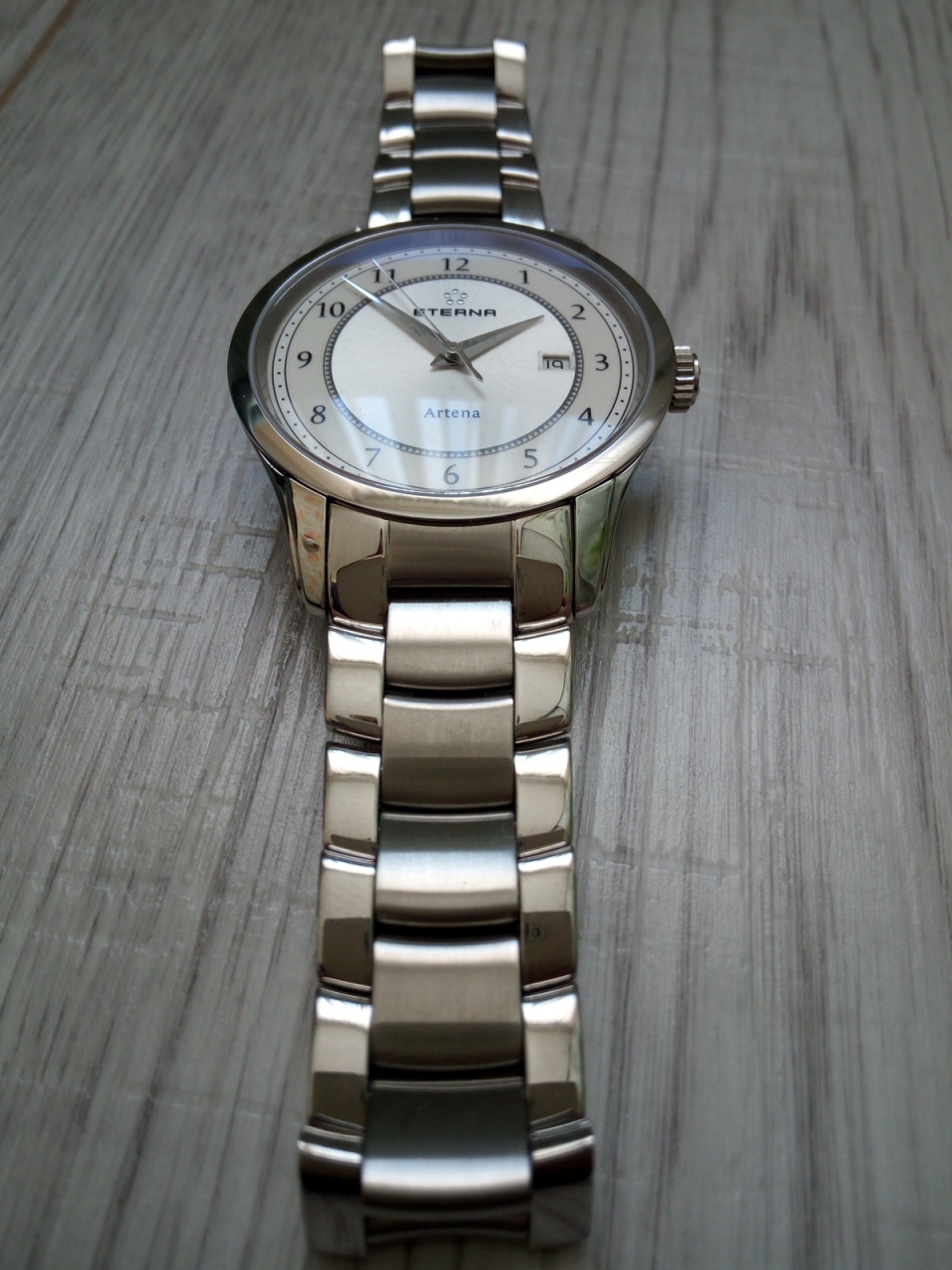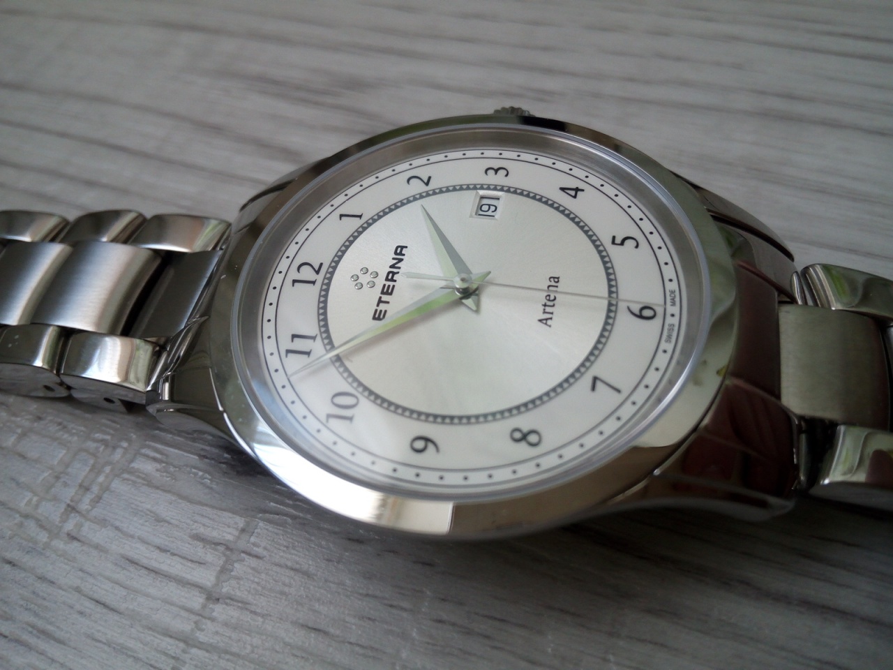 Очень красивый циферблат: центр серебро, по окружности слоновая кость с арабскими цифрами, стрелки-мечи.