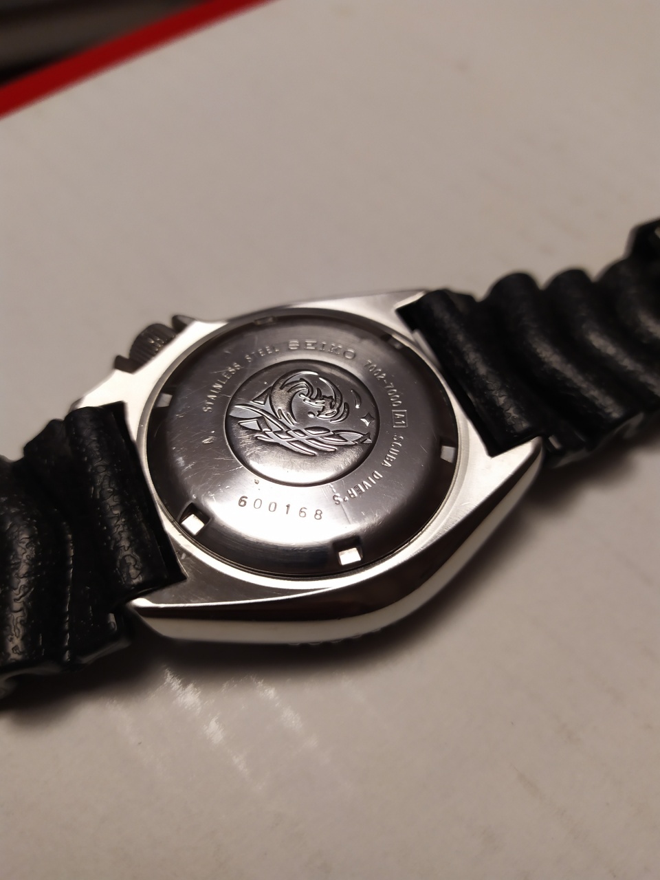 Всем привет. Решил все таки продать свои Seiko. Вообщем история. Покупал их примерно лет 6-7 назад у одного крутого чела из Филиппин на ebay. Часы полностью были разобраны и отреставрированы, отполированы и доведены до ума так сказать. Точно не помню, но по серийнику сами можете уточнить, что часы 1993 года, мех вроде 7002. Могу ошибаться, так как прошло довольно таки много времени и я точно уже не помню. Точность хода - бомба. +10 секунд в неделю. Есть два нюанса, и они выделены на фото. Это небольшая царапина на спекле и не полностью порван тренчик. Покупал за $230, продаю за $150. Можно обмен.