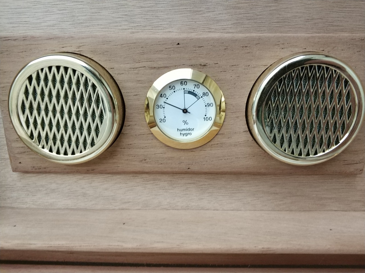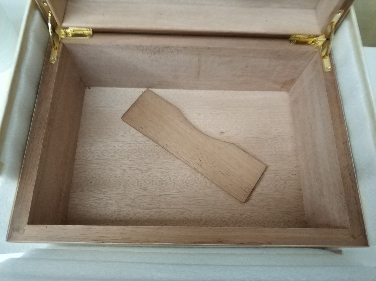 Комплектация: коробка с отделением для хранения часов, гигрометр, два съемных увлажнителя, делитель отделения для сигар.