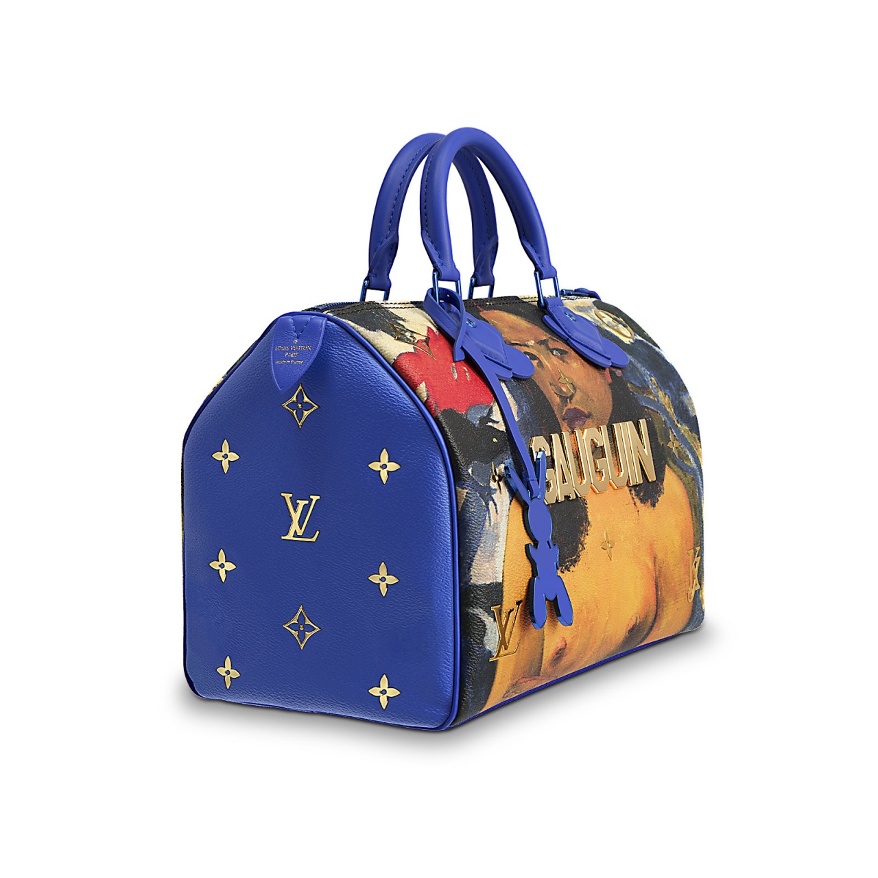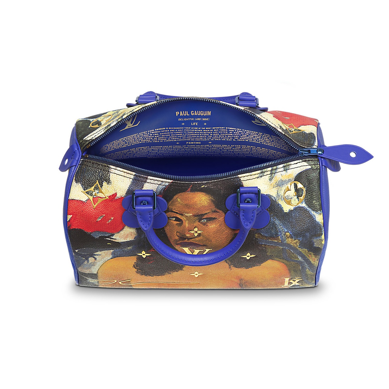 Сумка украшена репродукцией работы величайшего художника-постимпрессиониста Поля Гогена, а конкретно знаменитой картиной Delightful Land ("Восхитительная земля") 1892 года. Картина эта необычная, и имеет скрытую особенность в духе загадок романа "Код да Винчи": в ней автором зашифрован классический сюжет о Райском саде, эта картина также известна под названием "Полинезийская Ева". В настоящий момент картина хранится в собрании Художественного музея Охара. Именно эту картину из всех работ Гогена Джефф Кунс выбрал для линейки LV + Masters.