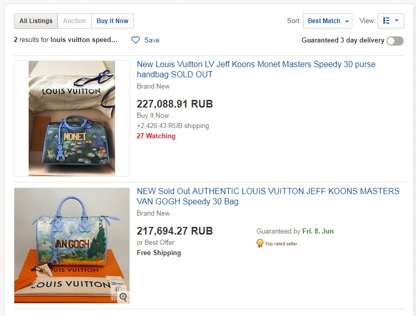 Джефф Кунс в 2019 году признан самым дорогим в мире из ныне живущих современных художников. Продается сумка из уникальной коллаборации Джеффа Кунса и Louis Vuitton. Без сомнения одна из самых красочных и роскошных коллекций LV всего десятилетия. В бутиках были моментально распроданы. Достать новой такую вещь практически нереально. Вещь коллекционного уровня.