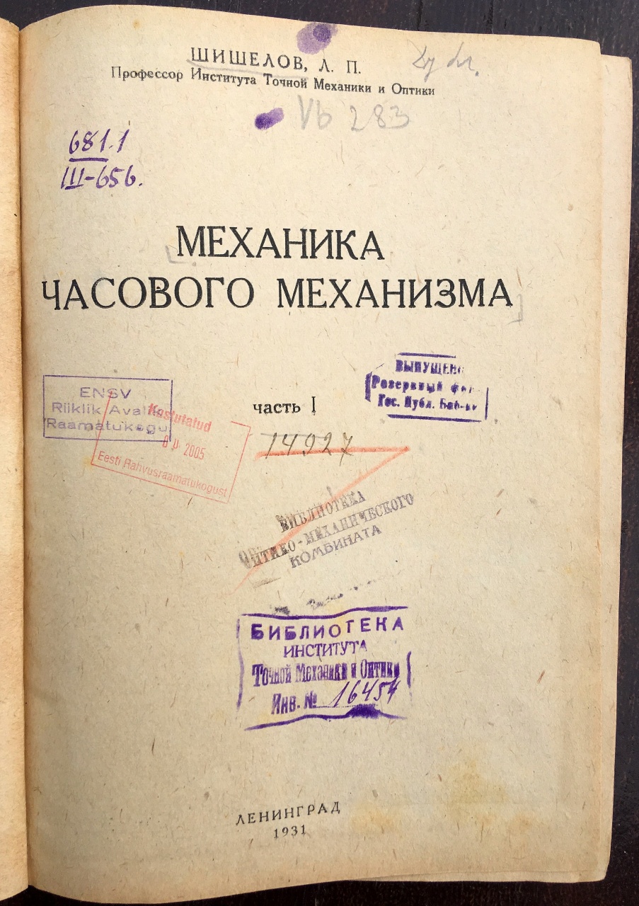 Шишелов Л.П. Механика часового механизма Часть 1 1931 год - Часовой форум Watch.ru