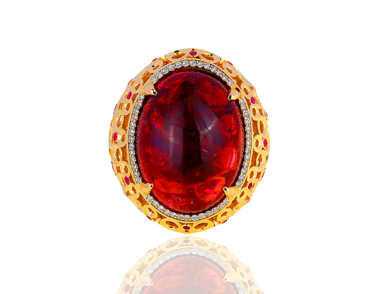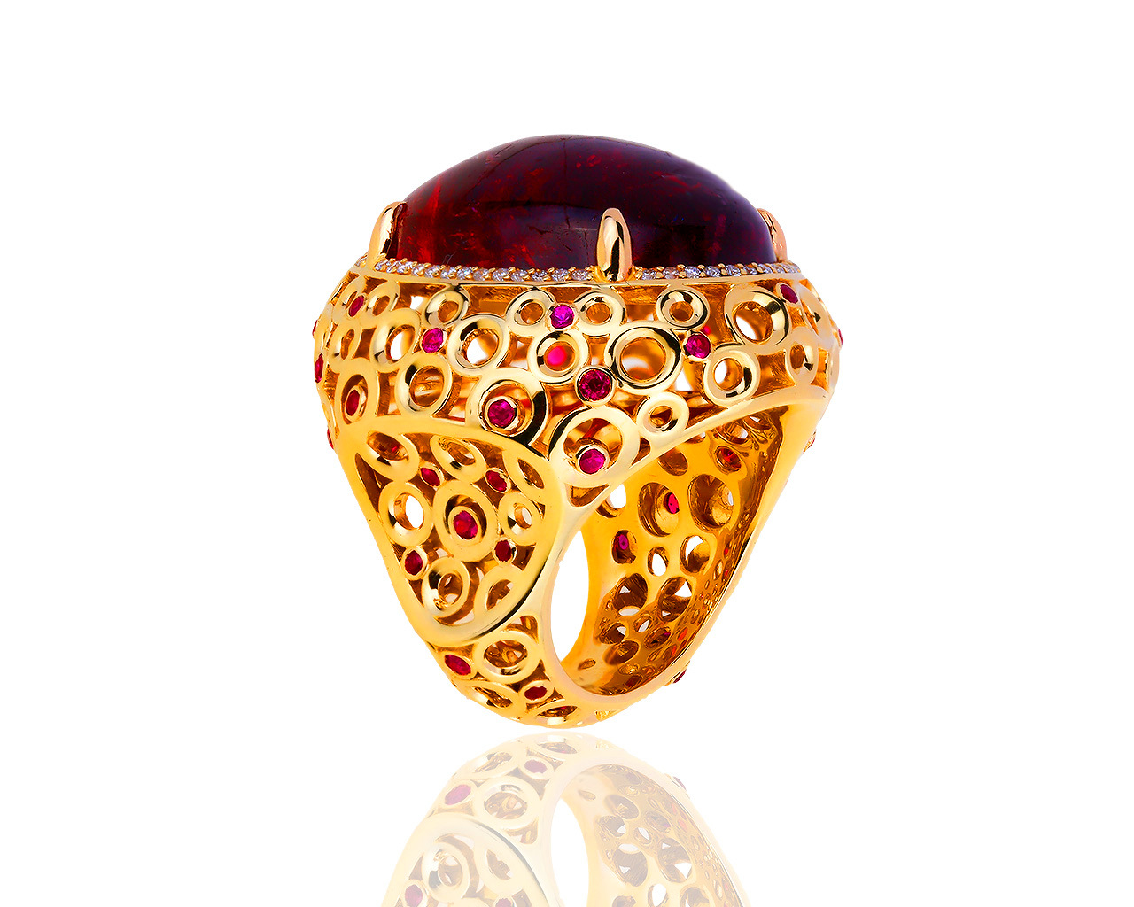 Стильное золотое кольцо с бриллиантами 0.51ct и рубинами 1.08ct