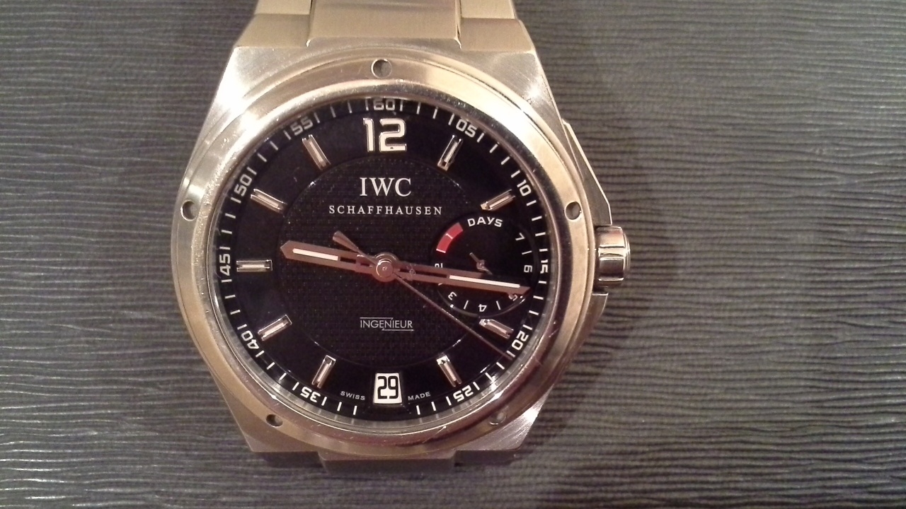Во впечатляющем корпусе часов Big Ingenieur скрыт надежнейший механизм, разработанный Пеллатоном. На циферблате размещены окошечко даты и индикатор запаса хода. Последнее деление индикатора выделено красным, что не только напоминает о запасе хода, но и вносит яркую ноту в общий дизайн модели. Задняя крышка часов прозрачна и дает возможность любоваться работой механизма. Частота 21 600 полуколебаний в час, 42 камня. Корпус нержавеющей стали, 45,5 мм.