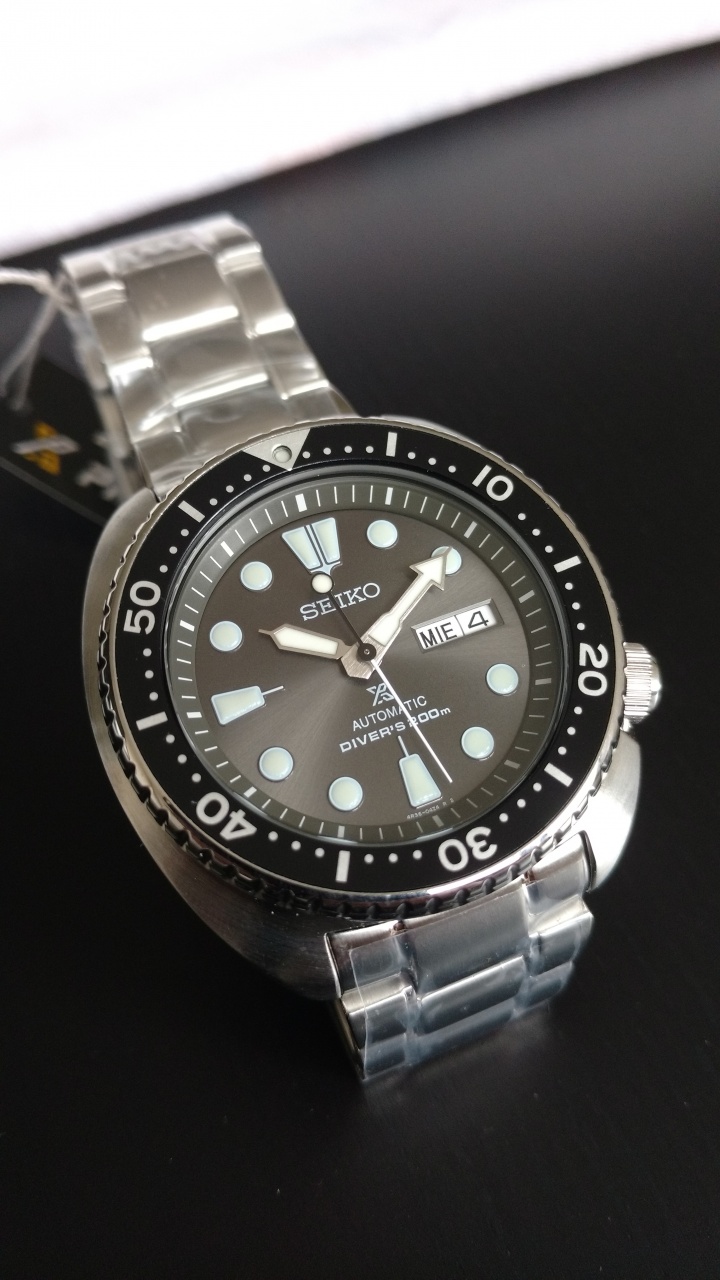 Продаю в полном комплекте Дайвер Seiko Turtle srpc23k1. Современное прочтение легендарной модели Turtle, они же "Черепаха" из восьмидесятых. Механика автомат на 4R калибре, водозащита 200м, завинчиваемая заводная головка и задняя крышка. Красивый серо-графитовый циферблат. Светомасса на стрелках и метках. Нержавеющая сталь. Цена 24тр . Обмена нет.