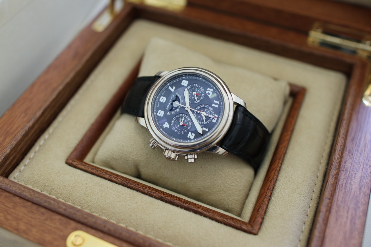 Blancpain Leman Perpetual Calendar Flyback Chronograph (Белое золото, Синий циферблат, Лимитка)