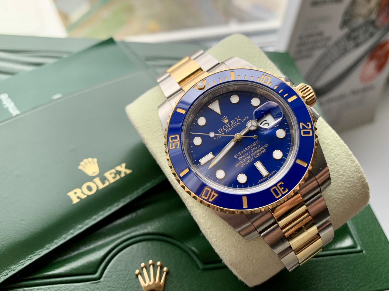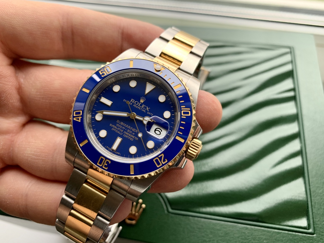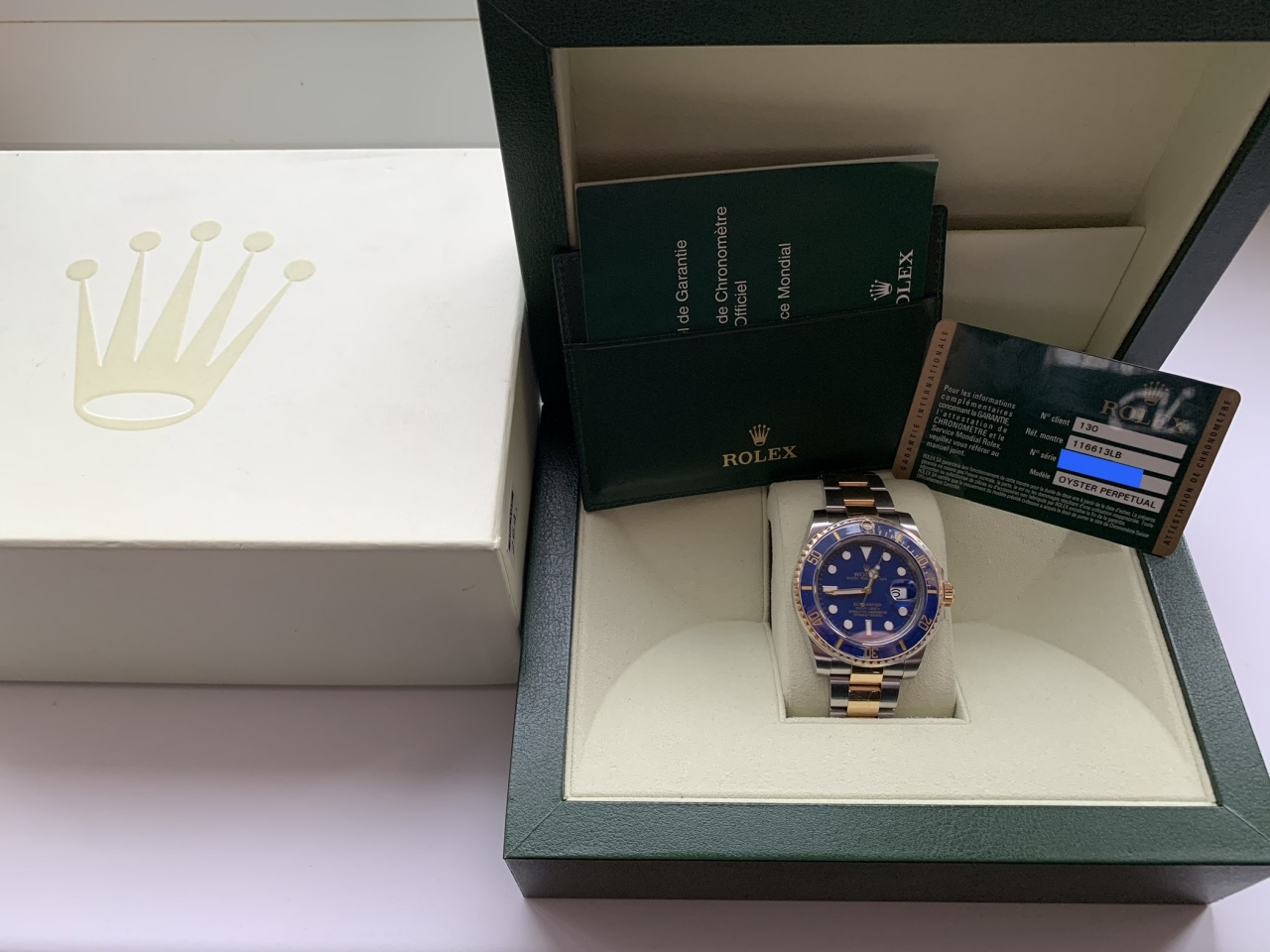 В продаже абсолютный хит - синий «биколорный» Саб с керамическим безелем. 2013 год. Европейский дилер. Полный комплект. Все звенья браслета в наличии. Часы в идеале, после первой и единственной легкой полировки. На крышке сохранилась заводская плёнка. Фото сделаны до полировки.