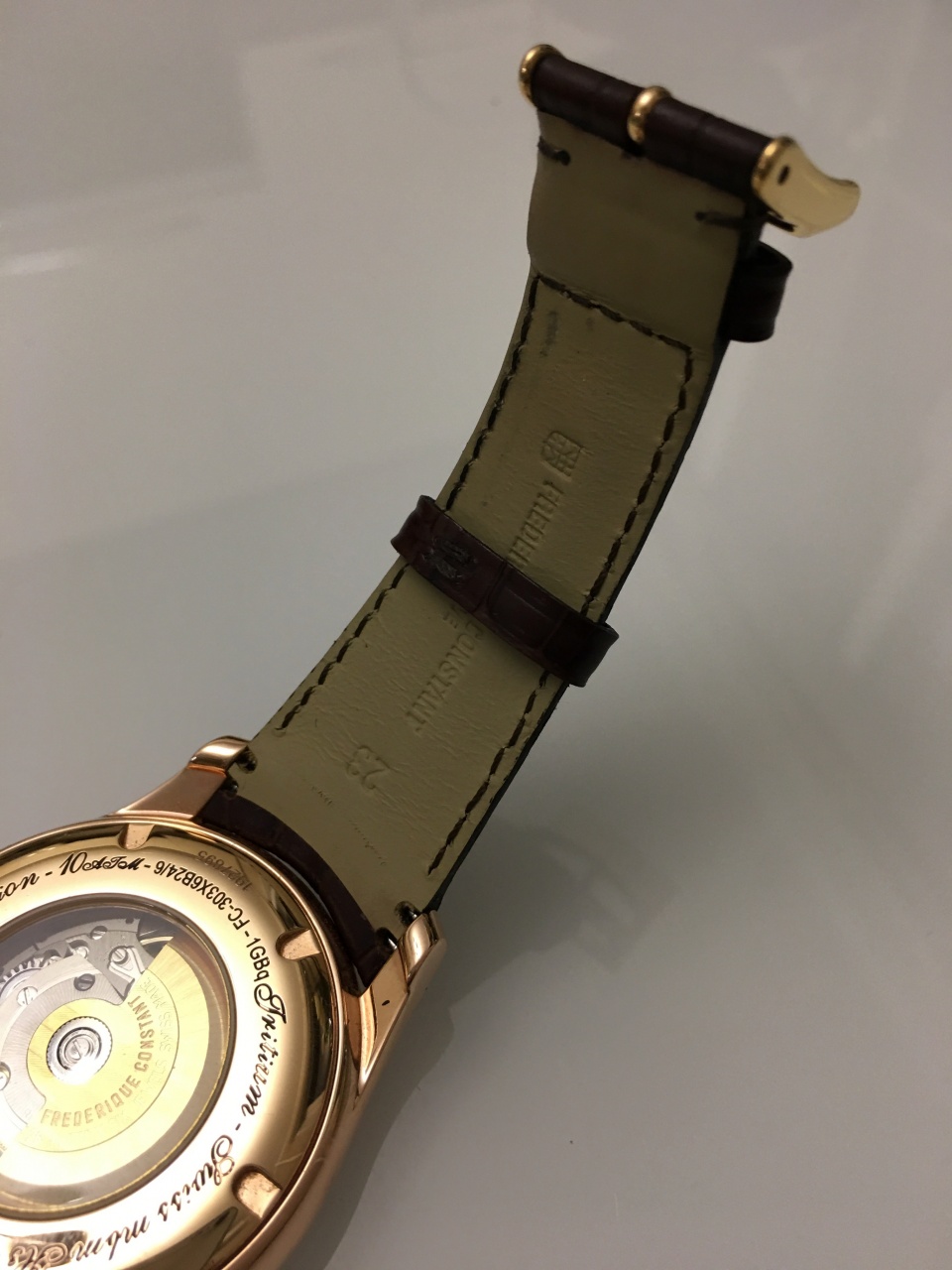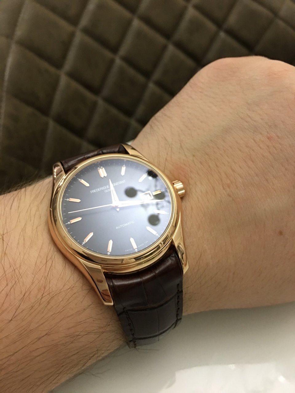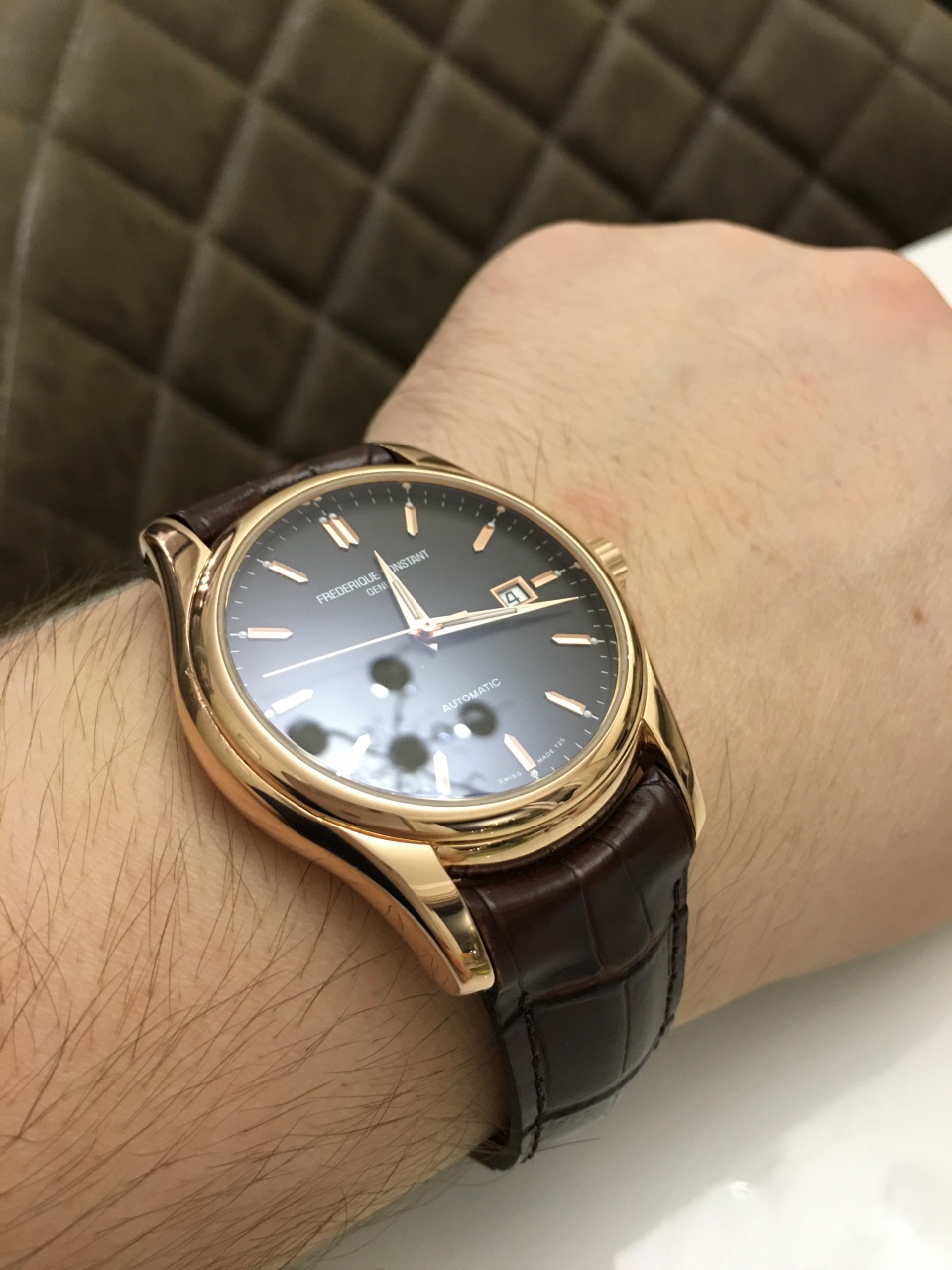 Frederique Constant в размере 43 мм, крупные красивые с люмом на стрелках. Родной крокодиловый ремешок в состоянии на 5-, очень МАЛО ношеный. Часы Без потертостей. единственный микро косячок мини зацепка на левой стороне часов (на фото видно, золото не тронуто)