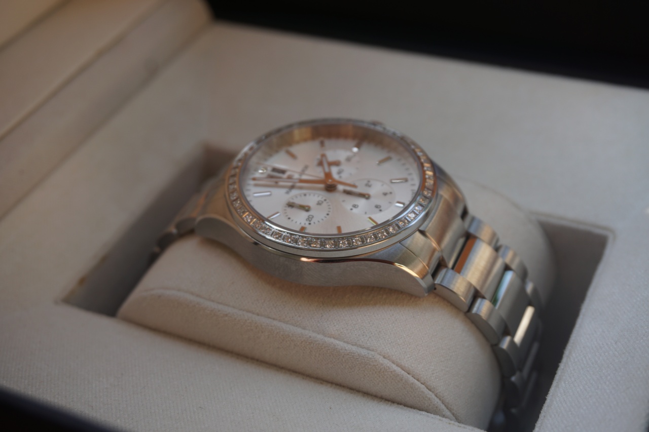 "Спортивный, современный, женственный хронограф с пьянящей смесью страсти и утонченности. Незаменимый компаньон в Вашей повседневной жизни."