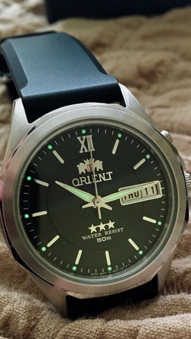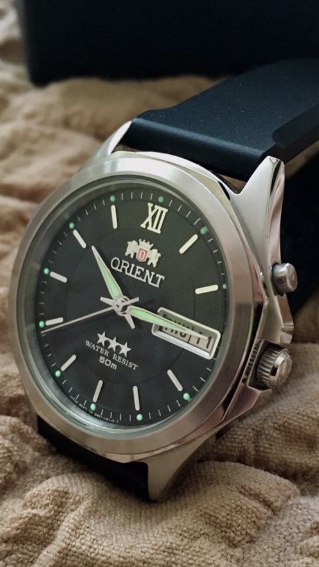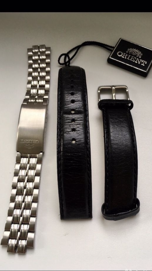 В комплекте, коробка, инструкция, гарантийный талон, родной кожаный ремень, оригинальный стальной браслет( новый), ремешок из натурального каучука (ваниль) фирмы Stailer