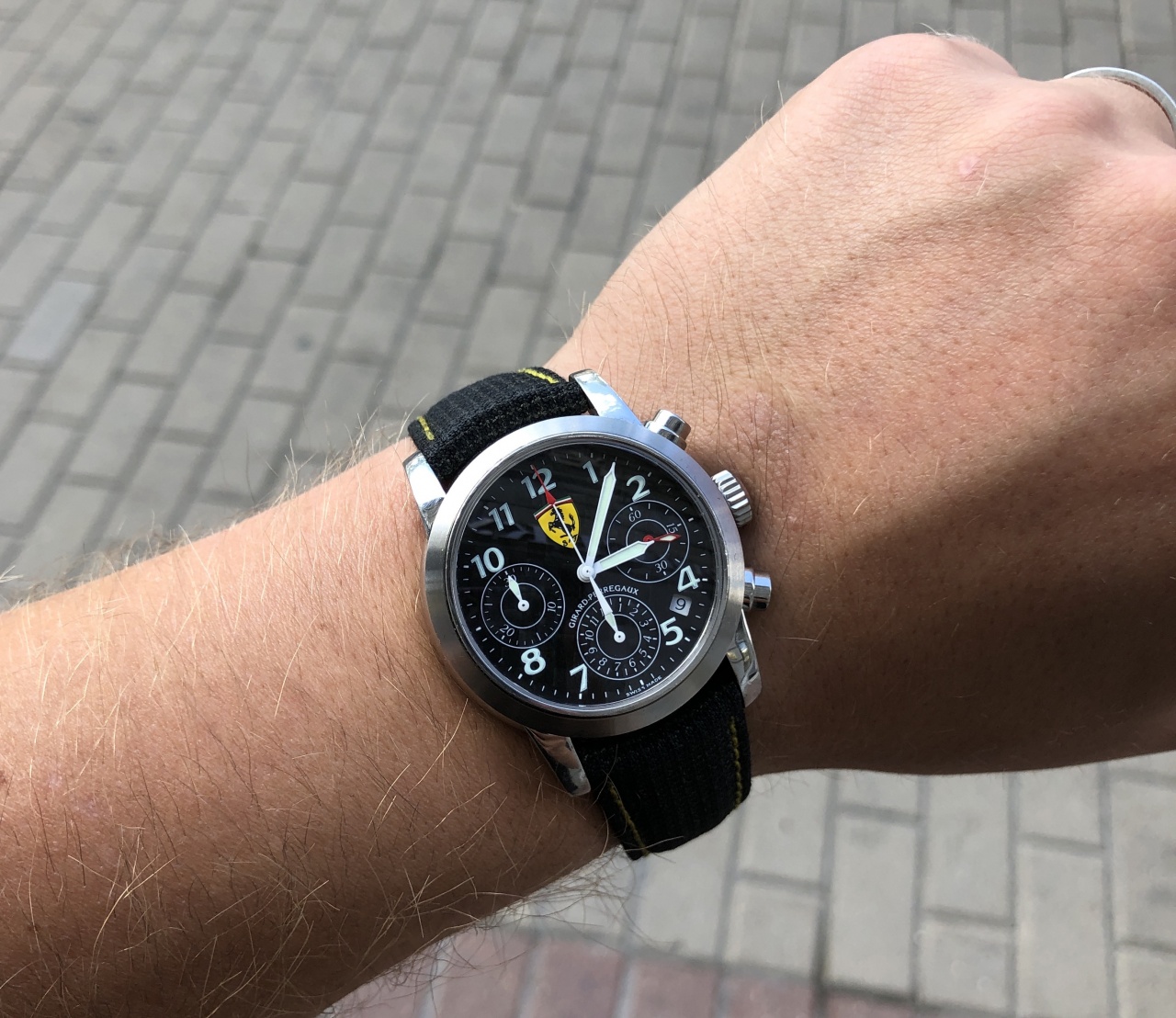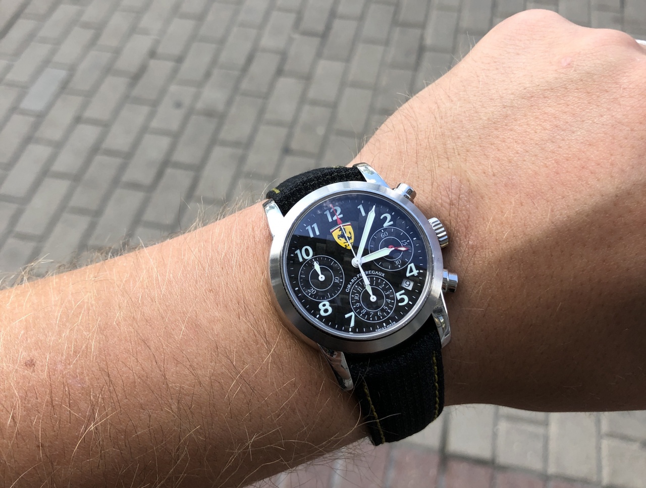 Шикарный Girard-Perregaux с карбоновым циферблатом! Часы после сервиса! Никогда не полировались , ремень оригинальный с желтыми нитками! Застежка правильная с логотипом феррари!