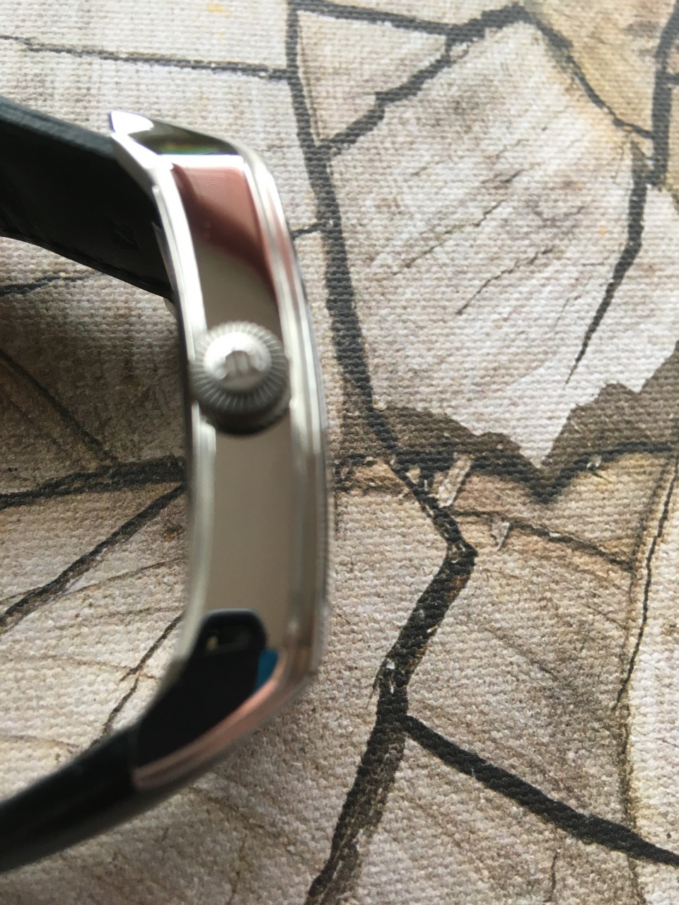 Модель поставляется в стальном корпусе (316L), размером 35,5х42,85 мм. 36х50 мм (с заводной коронкой и дужками). Прямоугольный формат корпуса идеально подходит практически на любую руку!