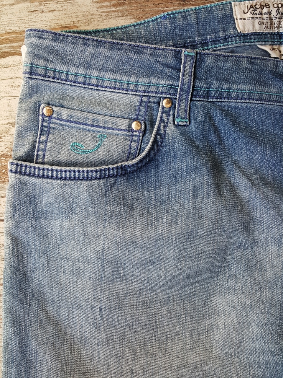 Модель: STYLE 688 прямого кроя, застёгивается на фирменные пуговицы с логотипами и надписью Jасоb Соhёn.