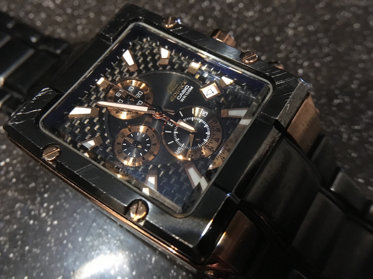 Продаются бомбические, редкие Casio Edifice efx-501sp, частично покрытые 24К золотом. Стекло сапфир с антибликом без царапин. Часы покупал в 2009г. в Бангкоке, коробки и доков уже естественно не сохранилось. Снятые звенья в наличии. Часы имеют следы естественной носки (царапины на корпусе и браслете, есть потертость чёрного покрытия на браслете возле клипсы). По работе механизма нареканий нет, идут точно и надёжно, стрелки попадаю в отметки. Без падений. Летом была заменена батарейка и прокладка задней крышки. На фото они. Если есть вопросы, пишите, звоните.Возможен торг.