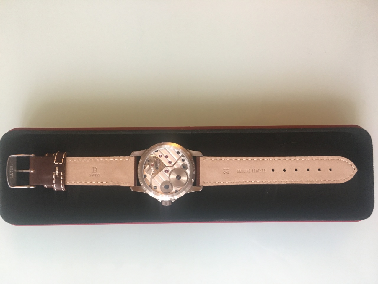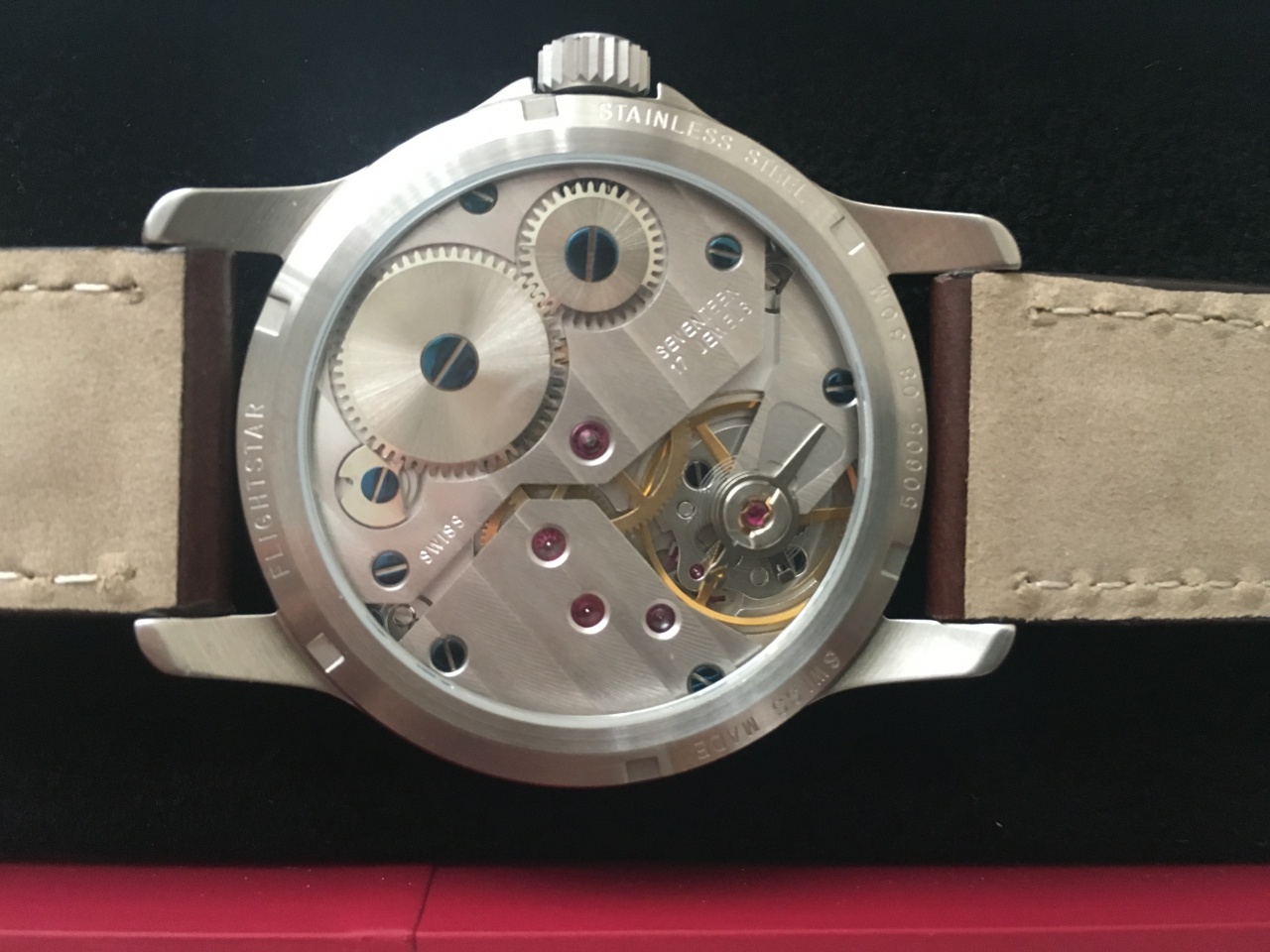 Часы были куплены мной в Швейцарии в 2013 году, ни разу не носились, в наличии полный комплект, кроме чека (коробка, гарантийная карточка, сервисная книжка). Механизм Unitas 6497 с ручным заводом. Великолепный молочный циферблат, редкий для «пилотов», но при том – яркий люминофор на метках. Кожаный ремешок с тщательно подобранной под цвет циферблата строчкой.