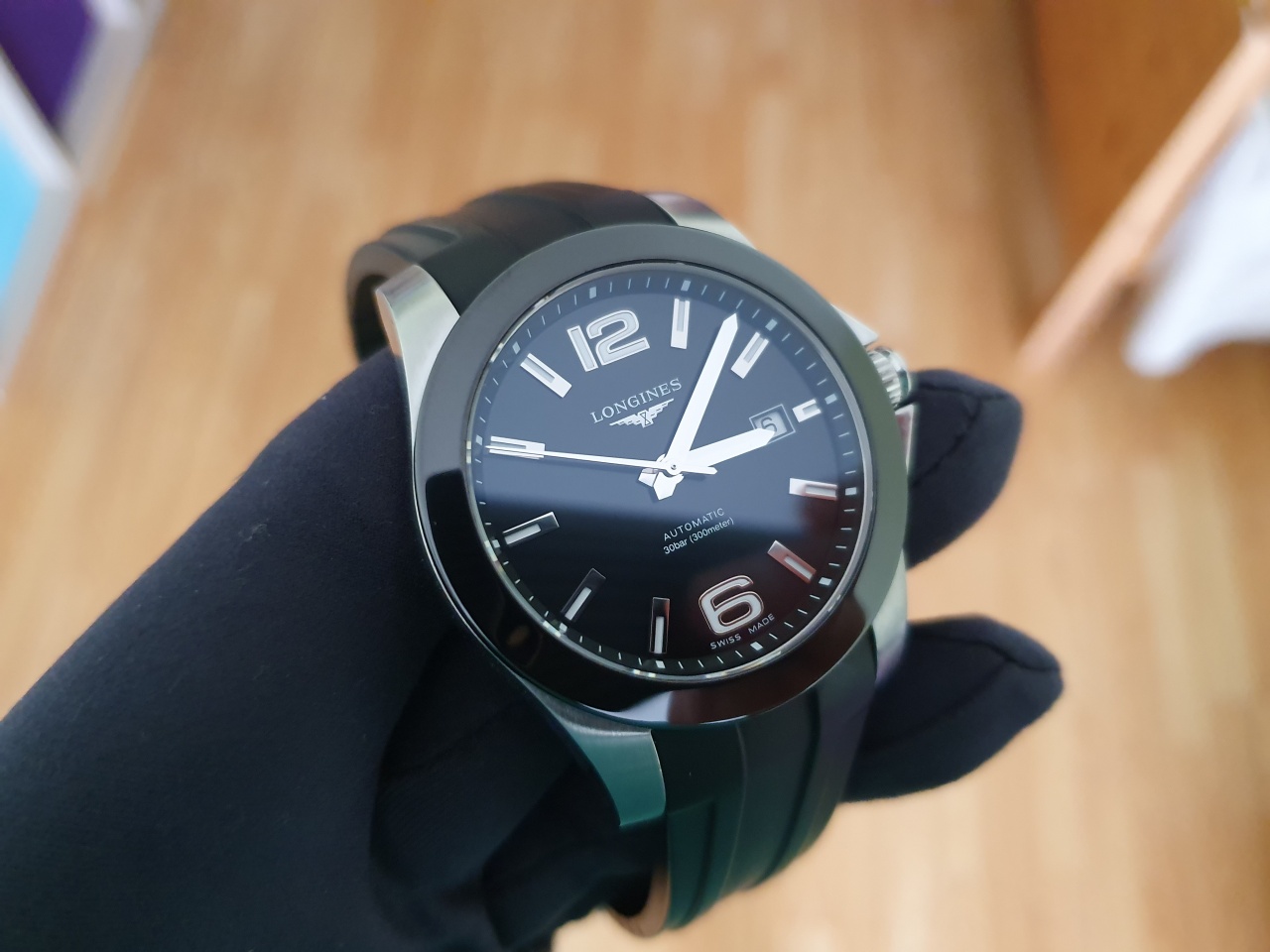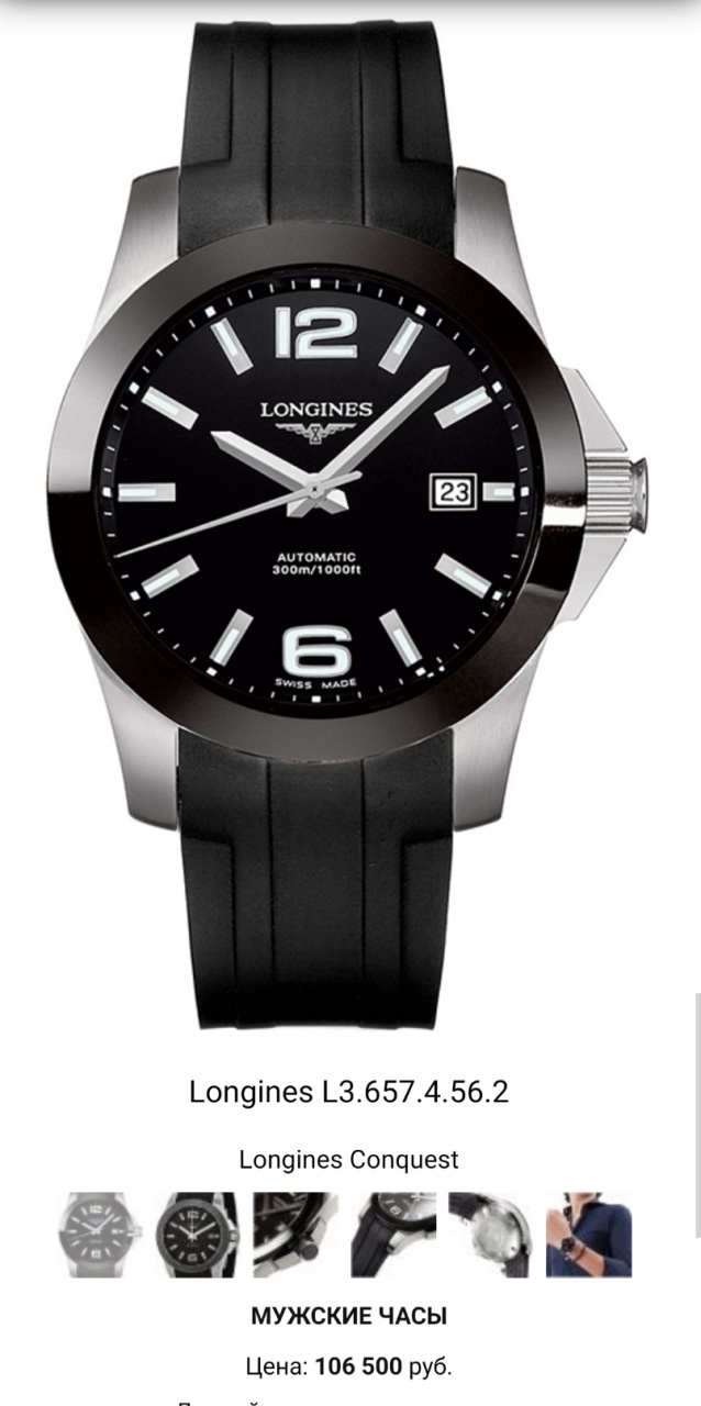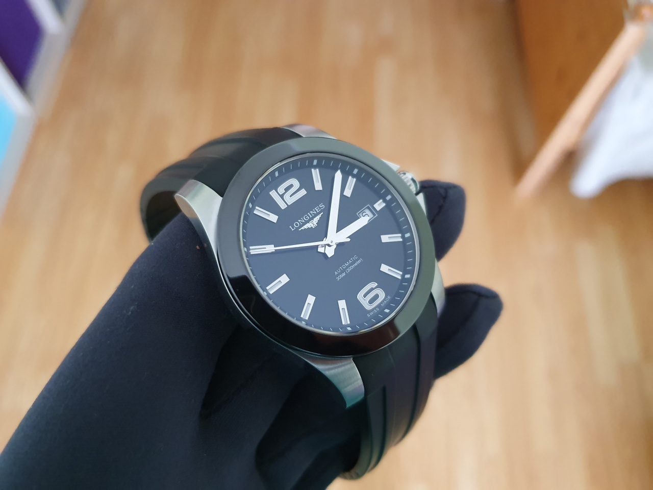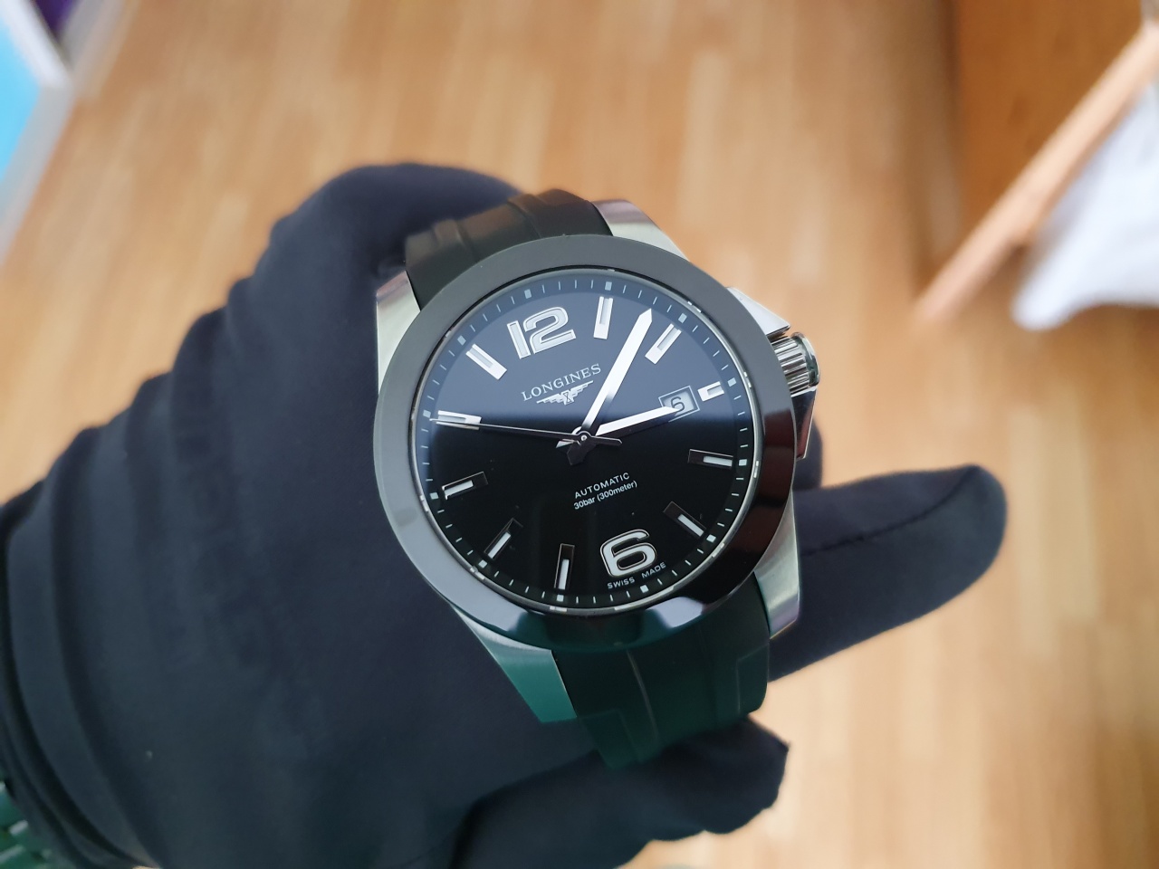К продаже предлагается отличный Longines Conquest в идеальном размере 41 мм. Данная модель исполнена в стали с чёрным керамическим безелем!