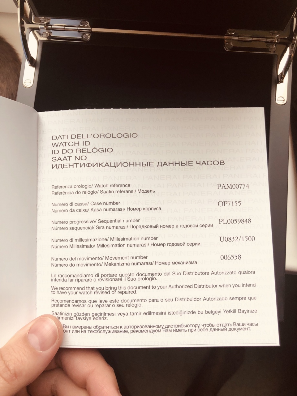 Решил все таки продать свои Памы. Представляю вашему вниманию базовый пам на мануфактурном механизме.Panerai Pam 774. Не полировались, не вскрывались .на стекле есть малозаметная царапка, поэтому и поставил АА!!!. Куплены в феврале 2019 года.носились мало. Покупал на маркете у известного всем продавца.