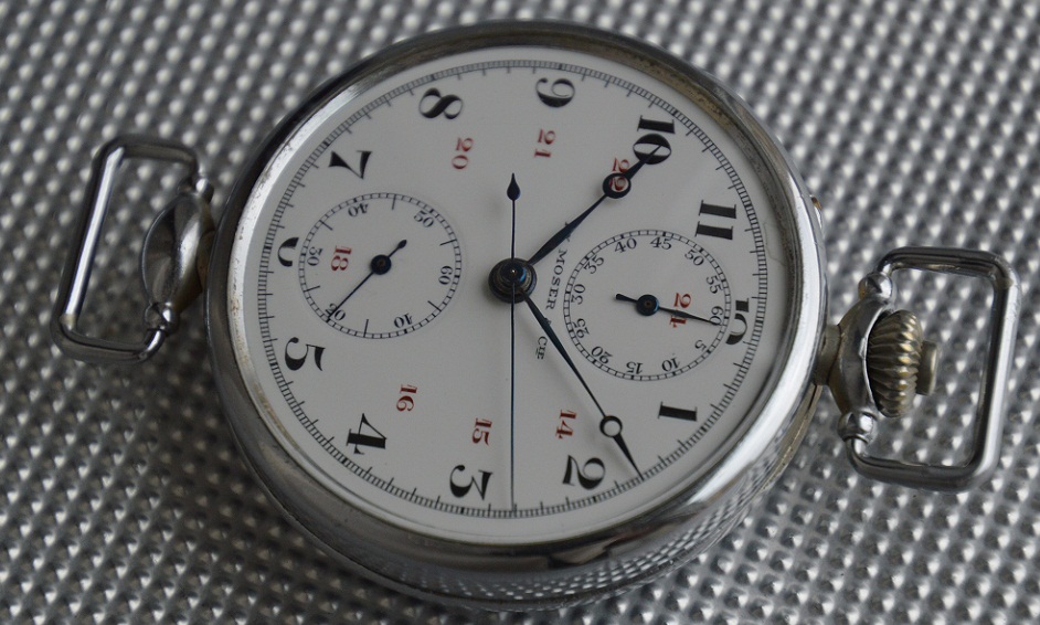 В продаже Кавалерийский наручный хронограф HY MOSER & CIE, 44 мм, 1910-е.
