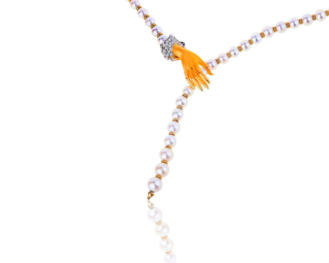 Золотое колье с жемчугом и бриллиантами 0.10ct Carrera y Carrera
