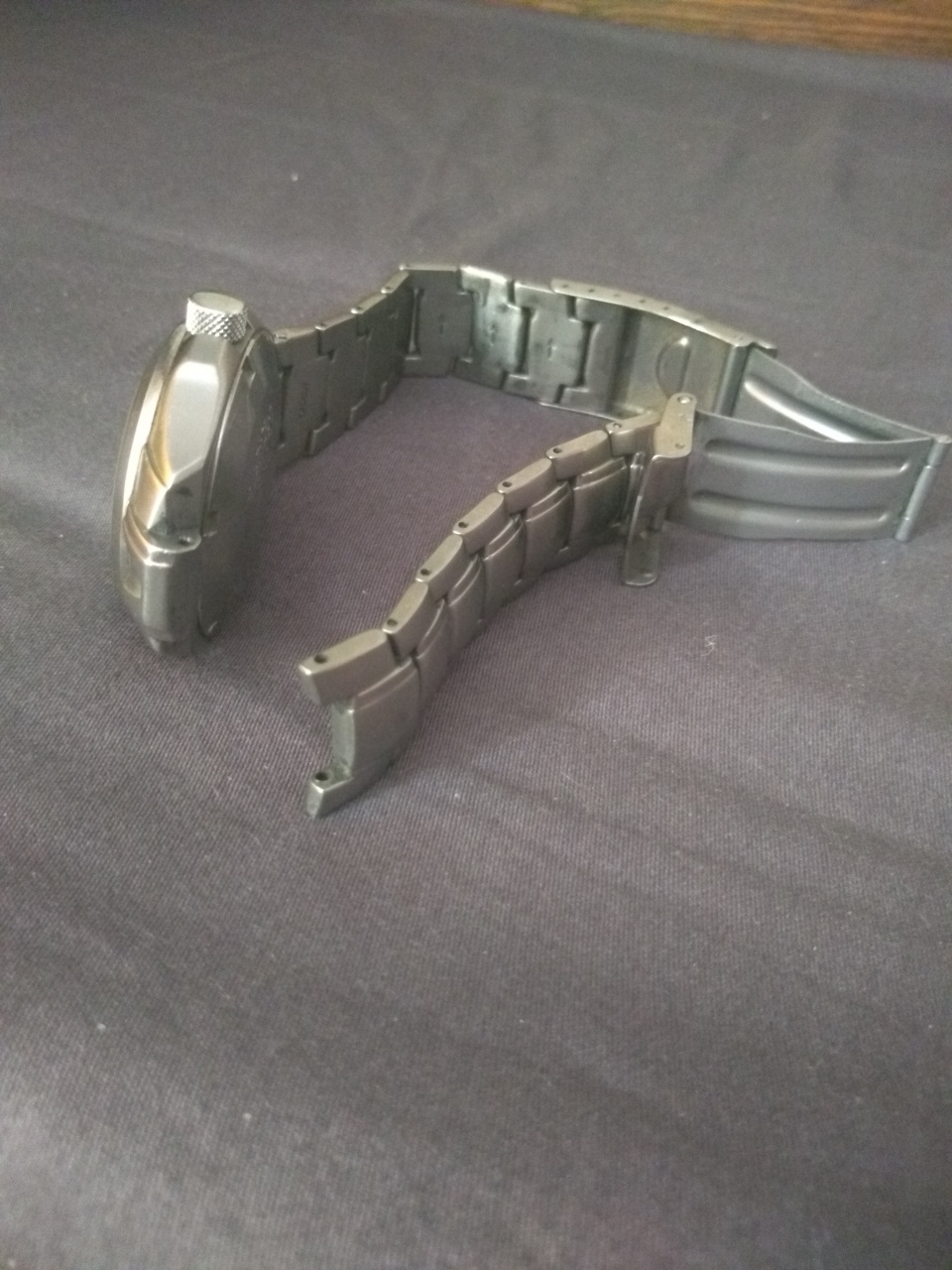 Сначала сломался замок браслета. Отломился язычок защёлки складывающейся части замка. Носил долго без него просто фиксируя браслет от расстегивания контрольной скобой, которая есть на браслете.