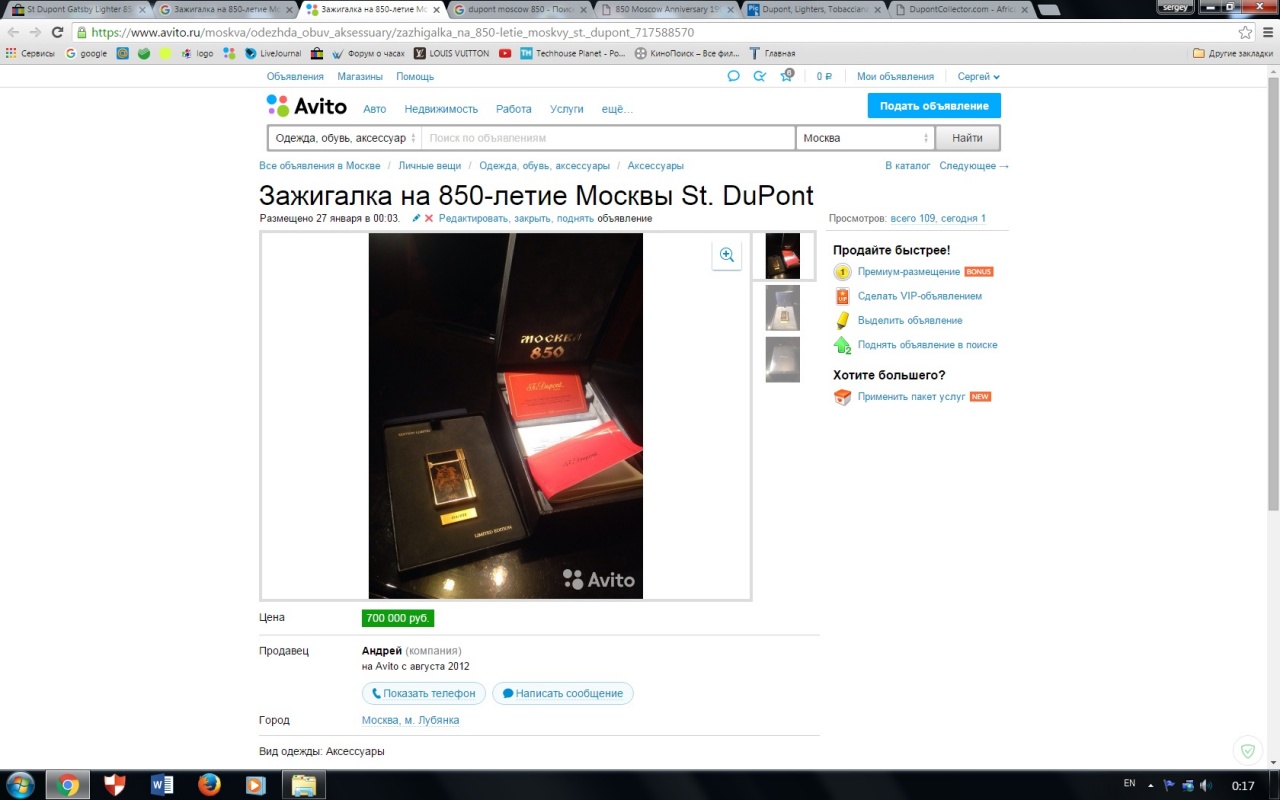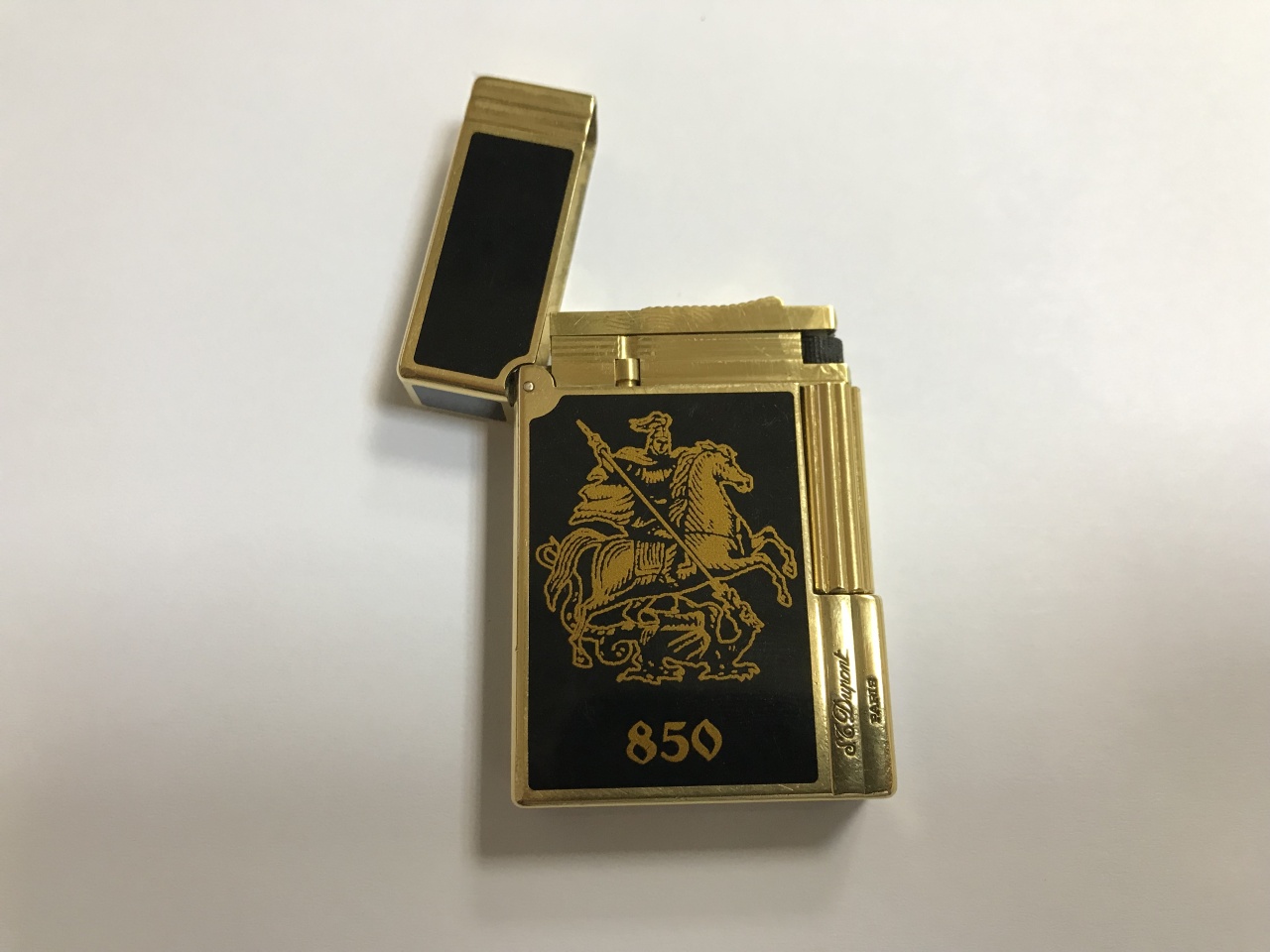 Компания S.T. Dupont решила отметить торжественную дату 850-летия основания столицы России и выпустила лимитированную серию зажигалок в 850 экземпляров, посвященную празднованию юбилея. Позолоченная зажигалка покрыта китайским лаком черного цвета. В его основе смола редкого растения Rhus Vernicifera, которую в небольших количествам собирают на берегах Красной реки в Китае и пересылают во Францию. Китайский лак стал фирменным материалом для покрытия изделий S.T.Dupont, а секрет его обработки строго сохраняется. На одну из сторон зажигалки лаком золотого цвета нанесено изображение Георгия Победоносца, ставшего символом Москвы.