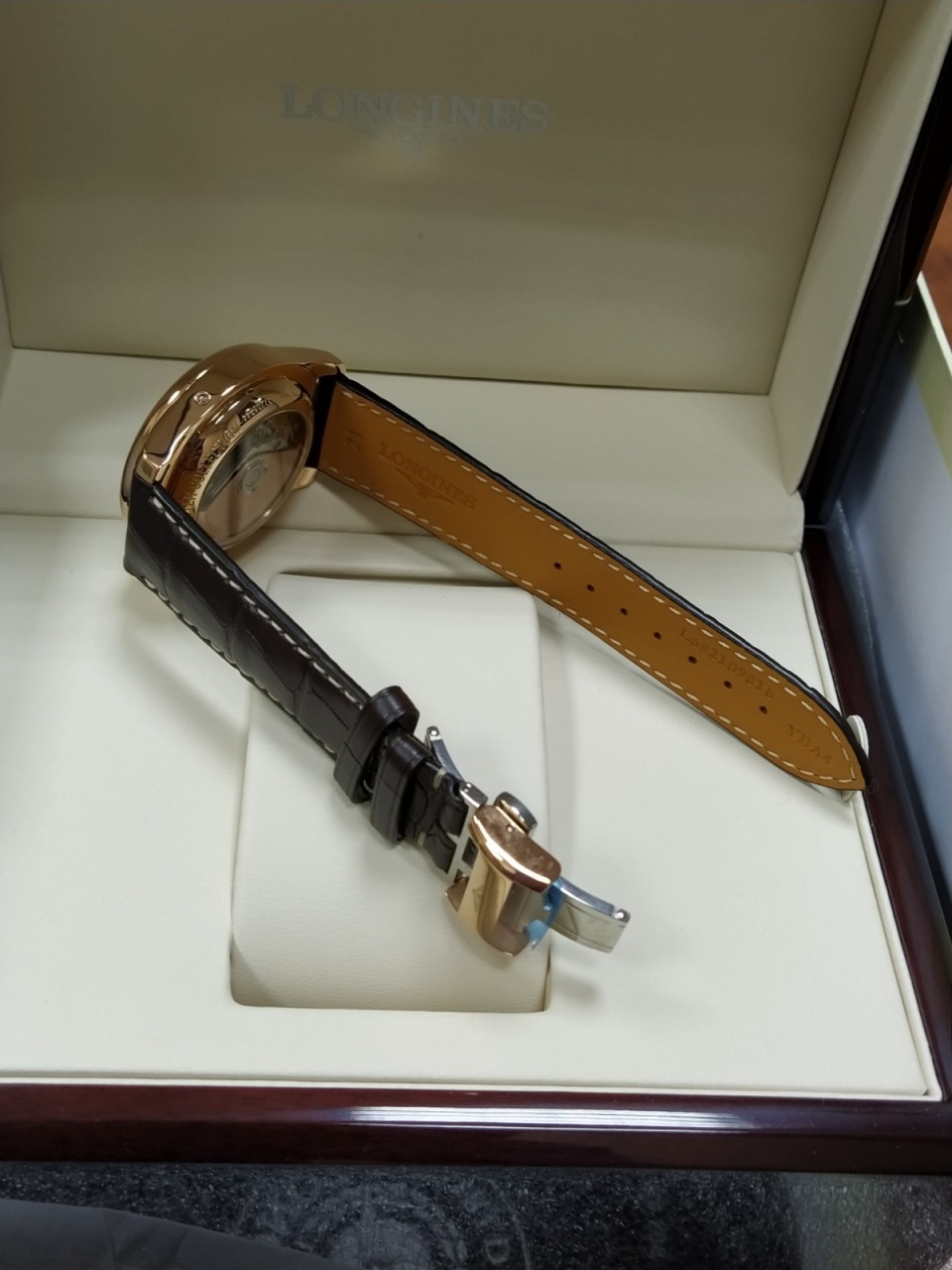 Корпус: розовое золото, диаметр 40 мм, сапфировое стекло, водонепроницаемость 30 м