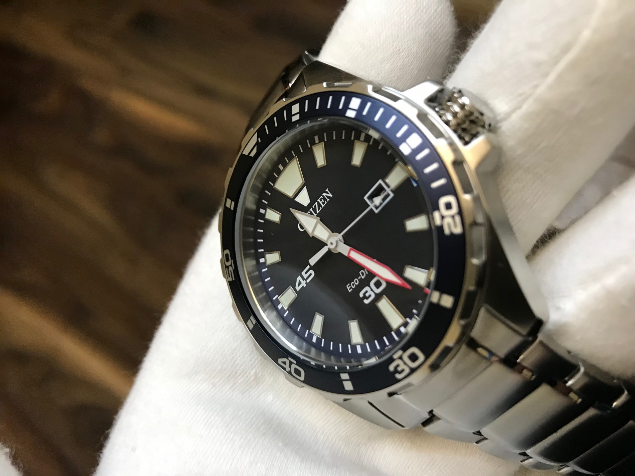 Светящиеся метки и стрелки. Индикатор даты. Водозащита 100м.