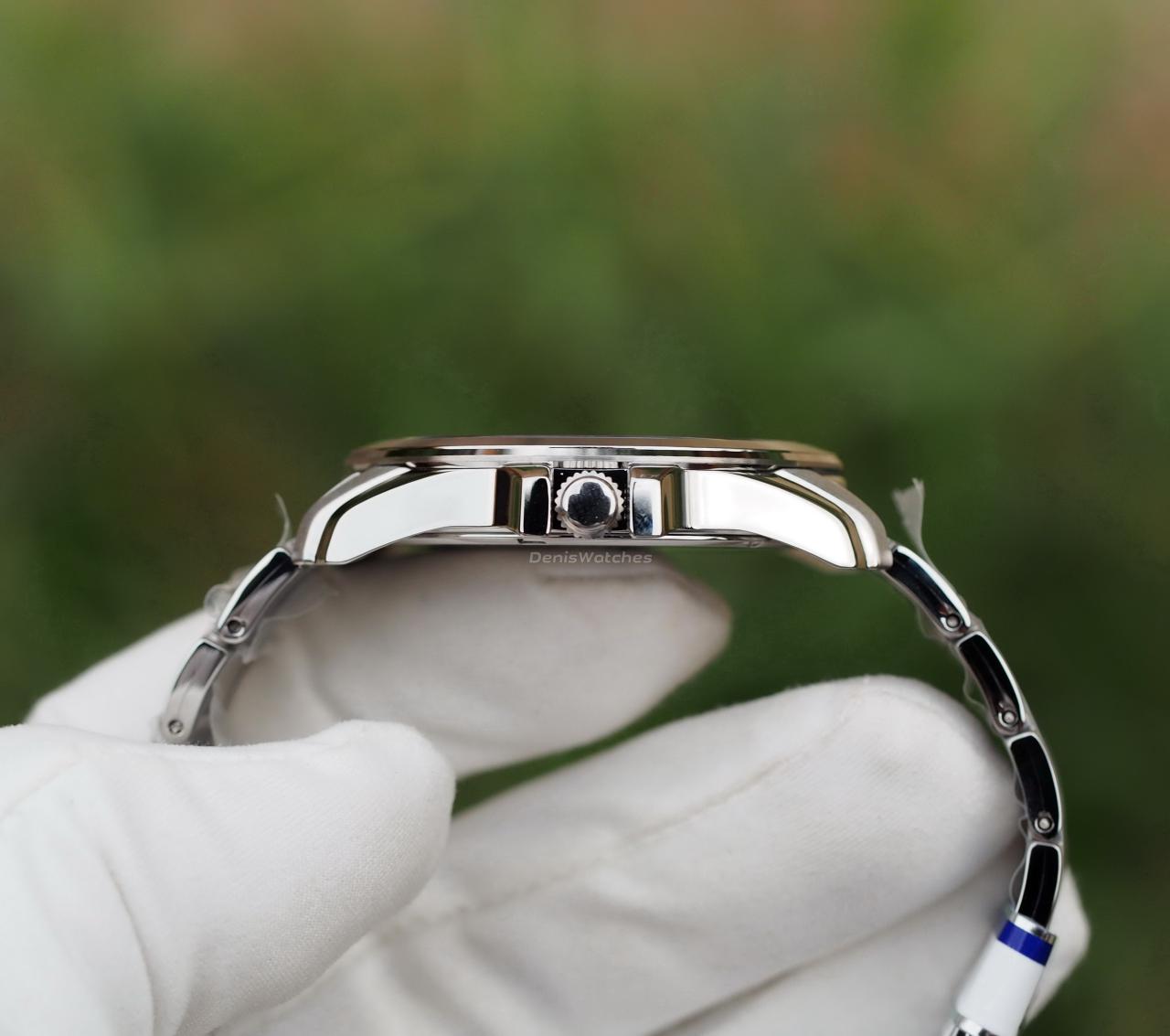 Стальной корпус, сатин + полировка, защитные выступы у заводной головки