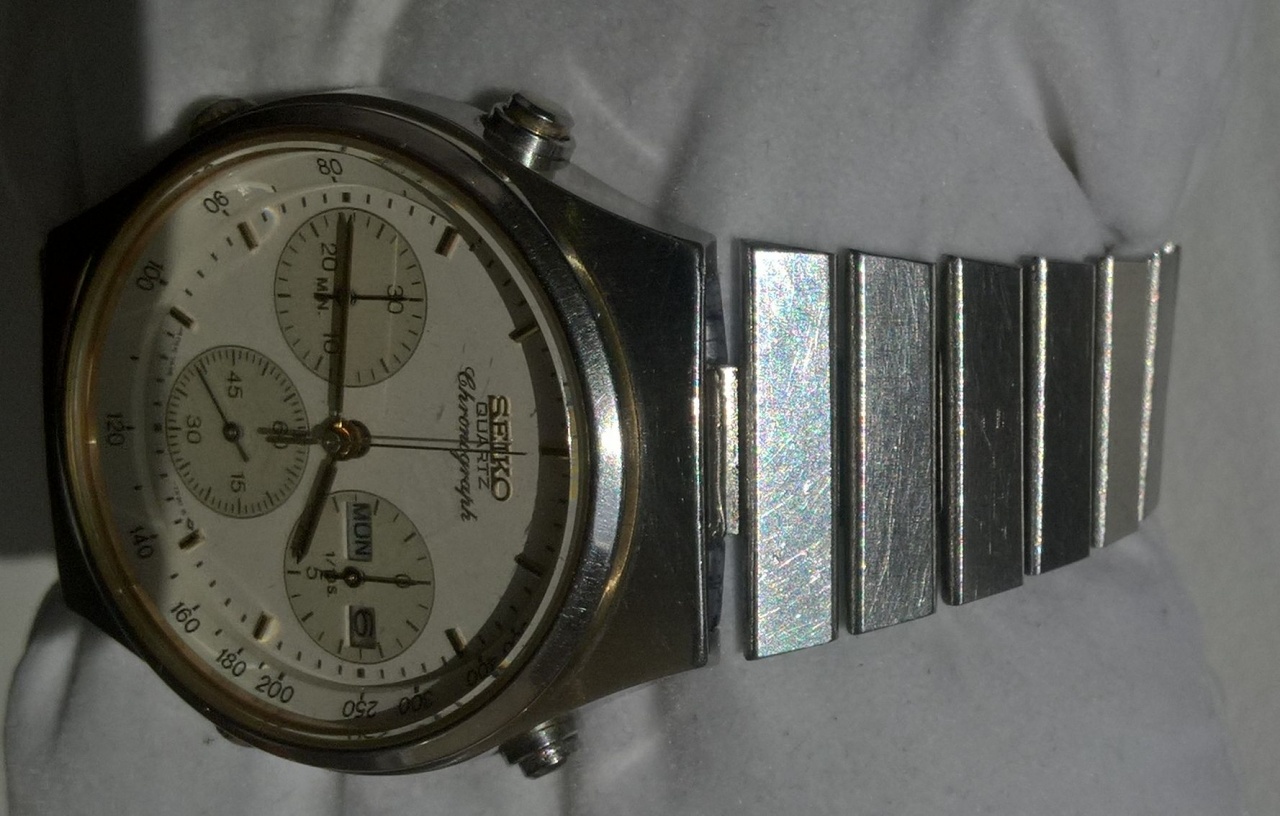 Браслет Seiko, но от других часов, подогнан с помощью пластиковых втулок, видно на фото сзади и фото сбоку на 6 часов