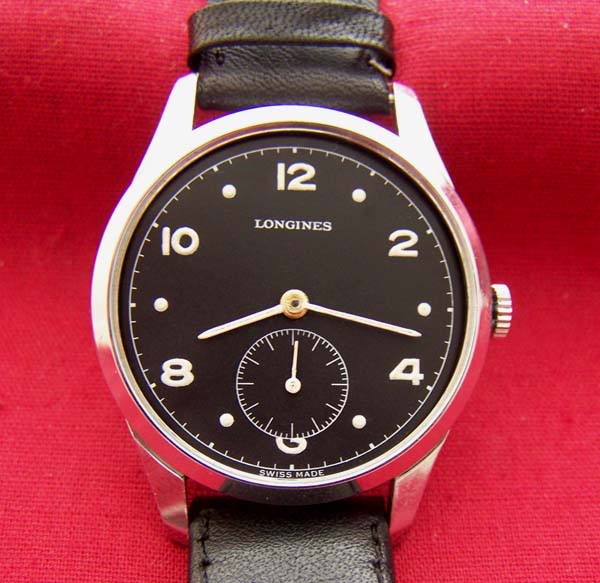 * Циферблат - Супер состояние; белые покрытые люминесцентным составом арабские цифры, метки и стрелки; чёрный фон; маленький секундный циферблат на позиции 6 часов; Подписан ниже 12 часов - LONGINES, ниже 6 часов - SWISS MADE.