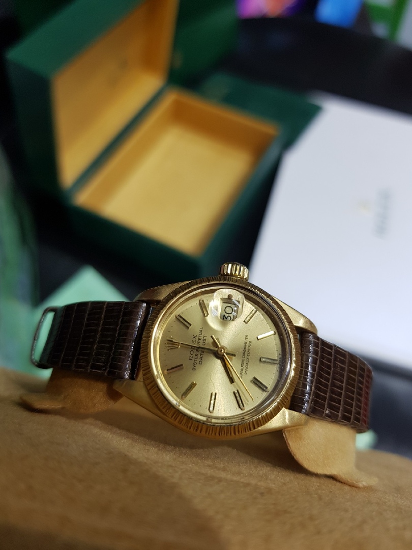 Классика всегда в моде, она выдерживает испытание временем и подходит для любого случая. В небольшом корпусе модели Lady-Datejust диаметром 26 мм заключены все качества знаковой модели Rolex . Неподвластная времени элегантность этого сокровища на каждый день подчеркивается волнующими и соблазнительными расцветками циферблатов, благородством материалов и сверканием бриллиантов. Здесь часы Lady-Datejust представлены в версии из золота. Циферблат цвета шампань. Полированный круглый корпус из нержавеющей стали (диаметр 26 мм, толщина 10 мм) с завинчивающейся заводной головкой Triplock. Безель с 18-каратного золота с 4привносит дополнительный штрих великолепия и утонченности. Механизм на Caliber 2030 с автоматическим заводом ,Oyster Perpetual сертифицированный COSC. Центральные часовая, минутная и секундная стрелки. Водонепроницаемость до 100 метров (330 футов).