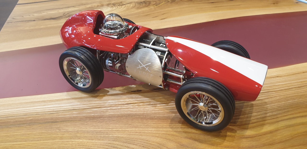 Несмотря на размеры — 38 см в длину, 16 см в ширину и 12 см в высоту при весе всего 4.7 кг, — этот спортивный автомобиль, который составил бы честь любой автогоночной команде, производит яркое впечатление.