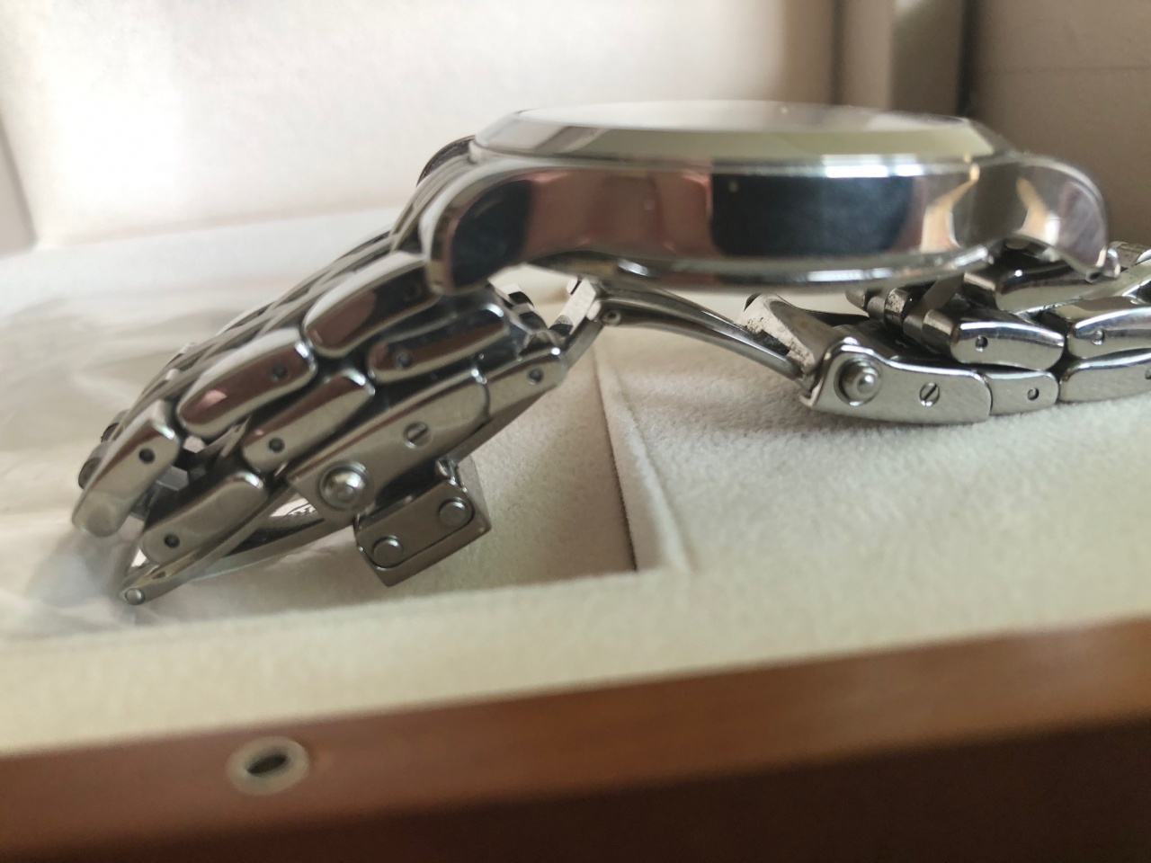 Легендарный мануфактурный калибр 975 на керамических подшипниках, не требующих смазки. Второе время в реализации с прыгающим часом и указателем "день-ночь" на 10 часах, необычное и удобное расположение указателя даты на 4 часах. Часы приобретены у ОД летом 2018 г., активирована дополнительная 8-летняя гарантия на сайте мануфактуры. Носились аккуратно, ни малейших сколов и царапин, полный комплект. Шикарный браслет с возможностью тонкой регулировки, снято одно звено, прилагается. Отличный, абсолютно точный ход.