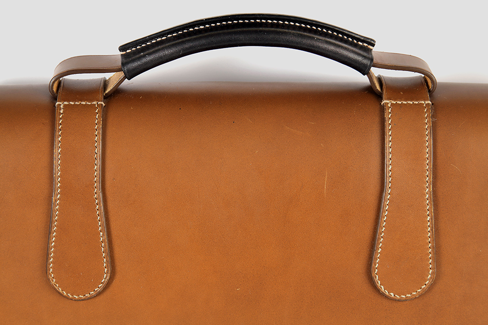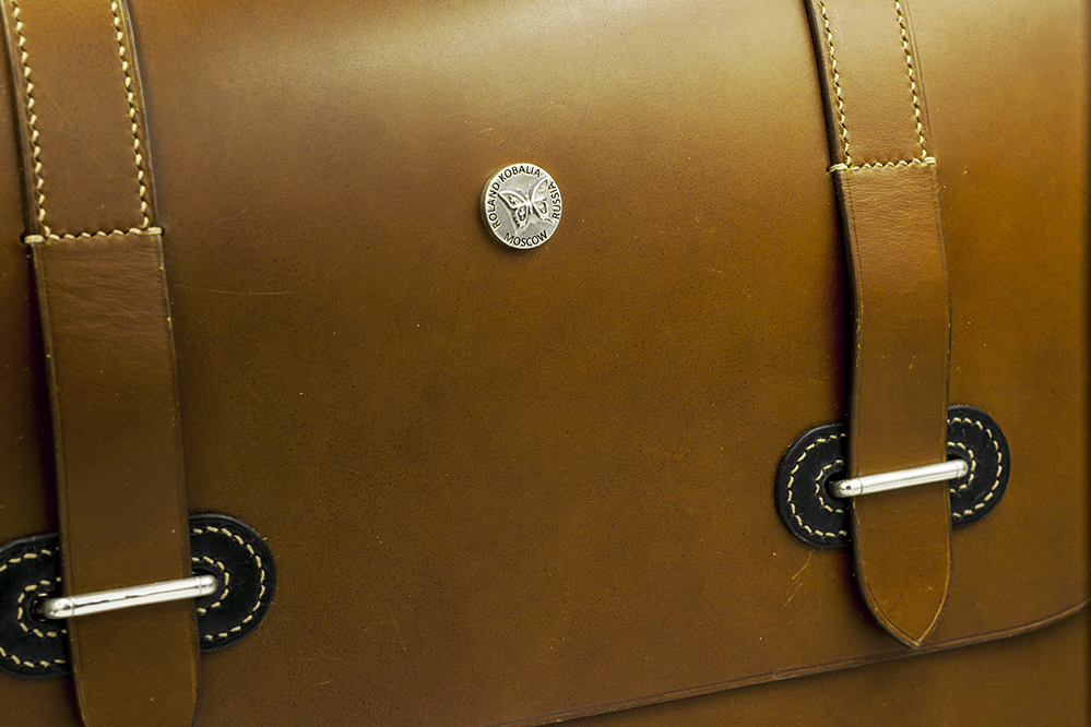 Основная часть сумки сделана целиком - то есть передняя и задняя части, дно и клапан выкроены из одного большого куска кожи. Боковины пришиты через промежуточную ленту из лошадиной кожи, что придает сумке абсолютно правильную форму, жесткость и безупречный вид. Ручка обтянута лошадиной кожей, что делает ее практически не изнашиваемой.
