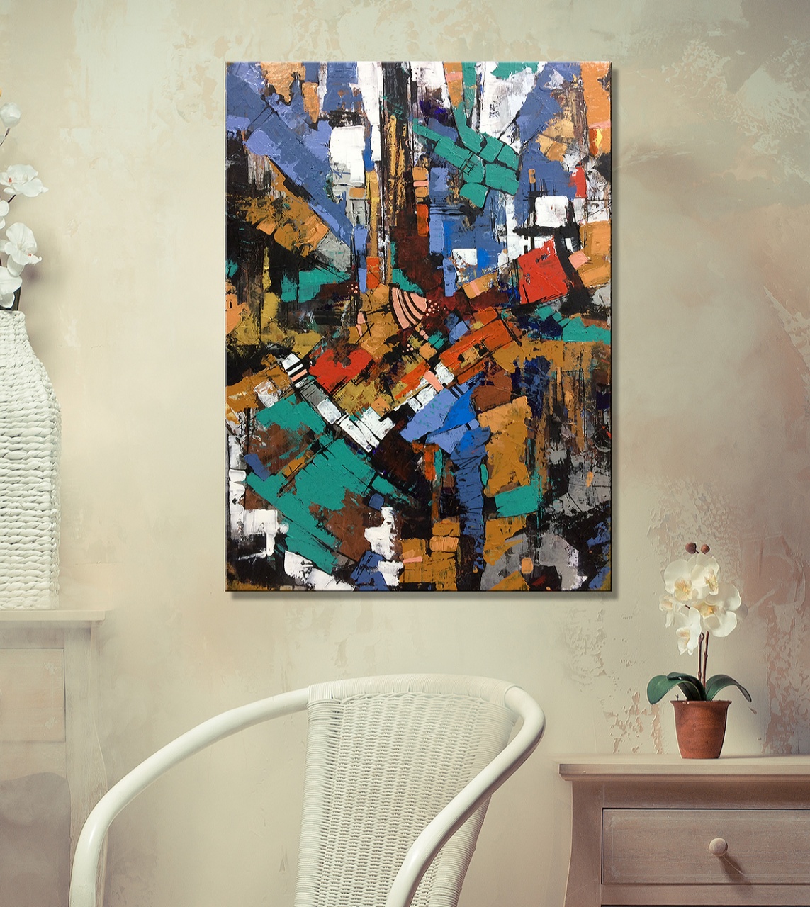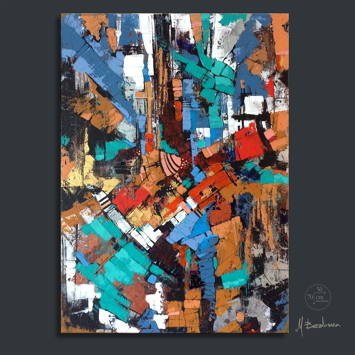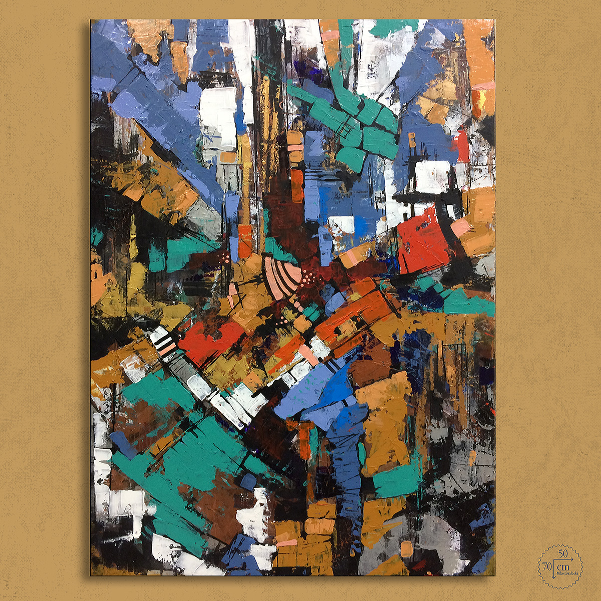 Одна из лучших, работ художника. Действительная редкость. Данная техника не оставляет шанса для гармонии. Сделать такое равновесие композиционный баланс цвета и формы редко удается. Повторить подобное практически невозможно. Искренне рекомендую ценителям подобного художественного выражения обратить внимание на эту работу. В некоторых местах используется краска с примесью металла, что, при определенных углах зрения, дает легкий, ненавязчивый блеск.