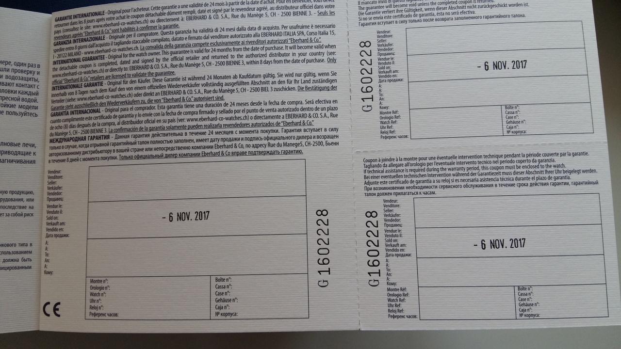 Комплектация: новые часы в пленках, коробки Eberhard внутренняя из итальянской телячье кожи и внешняя, гарантийный талон.