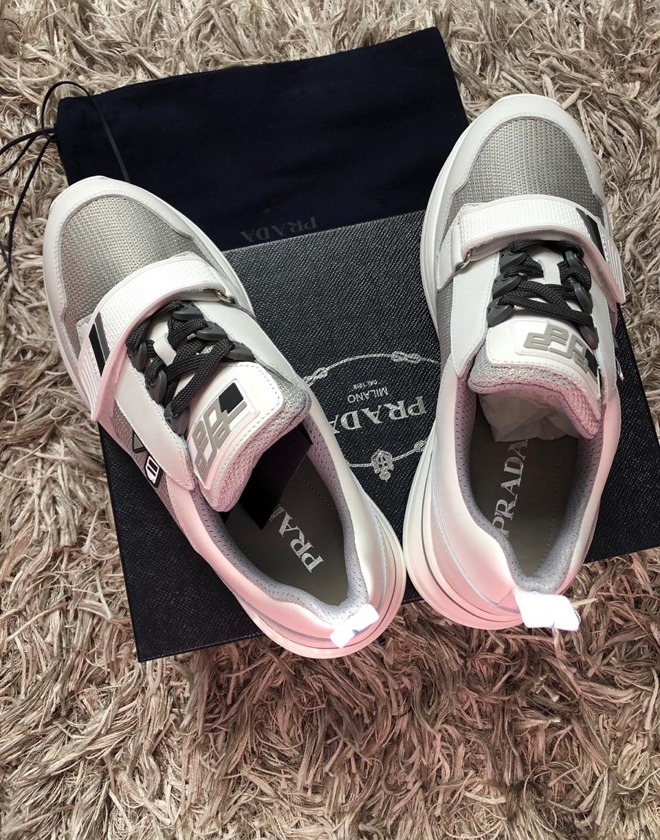 В продаже,новые мужские кроссовки от известного дома моды PRADA.Итальянский бренд активно использует при создании моделей грубые технические материалы,футуристичные резиновые нашивки-логотипы,графичные принты.Так,модный дом сезон за сезоном удивляет публику своими антиутопичными коллекциями.Подтверждение тому-кроссовки Mechano белого и серого цвета.Модель изготовлена из кожи со вставками из нейлона имеет петлю для подтягивания сзади,внуровку спереди,застёжку на липучке,верх в сетку,кожаные вставки и плоскую резиновую подошву.