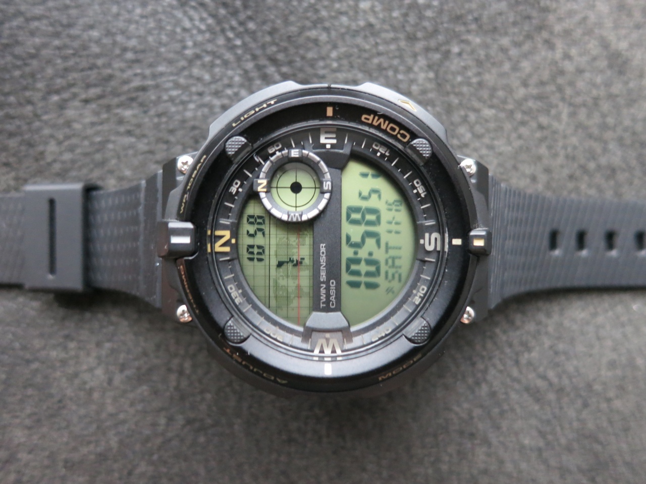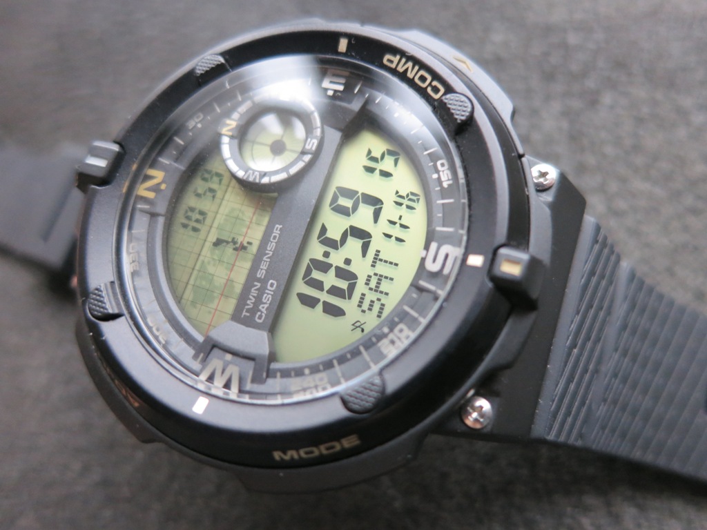 Out Gear. Электролюминесцентная подсветка освещает весь циферблат, после отпускания кнопки свечение продолжается еще некоторое время. Встроенный цифровой компас. Диапазон измерения от 0° до 359° с точностью 1°. Коррекция магнитного склонения. Встроенный датчик температуры от -10° до +60°С с точностью 0,1°C. Мировое время – 48 городов (31 часовой пояс), всемирное координированное время (UTC). Автоматический переход на зимнее и летнее время, возможность включения/отключения данной функции. На дисплее изображена карта мира с часовыми поясами. 12-ти и 24-х часовой формат времени. Секундомер с точностью показаний 1/100с и временем измерения 1ч. Сплит-хронограф. Таймер обратного отсчета от 1мин до 24ч с автоповтором. Функция включения/отключения звука. Алюминиевый безель.