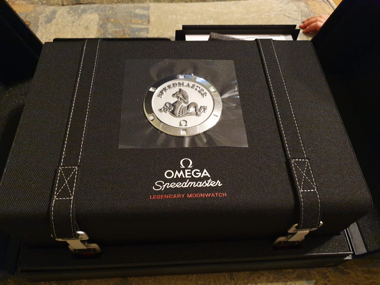 Основу этого хронографа составляет механический калибр 1863 – легендарный часовой механизм OMEGA с ручным заводом, который побывал с человеком на Луне. В специальный подарочный футляр, в котором предлагаются эти часы, также входят ремешок "NATO", ремешок для астронавтов, инструмент для замены браслета и лупа.