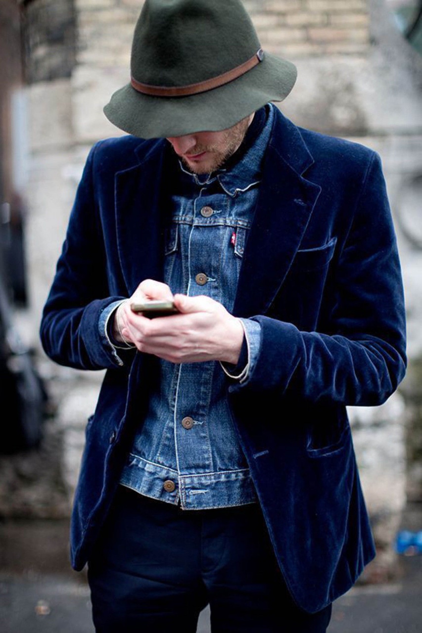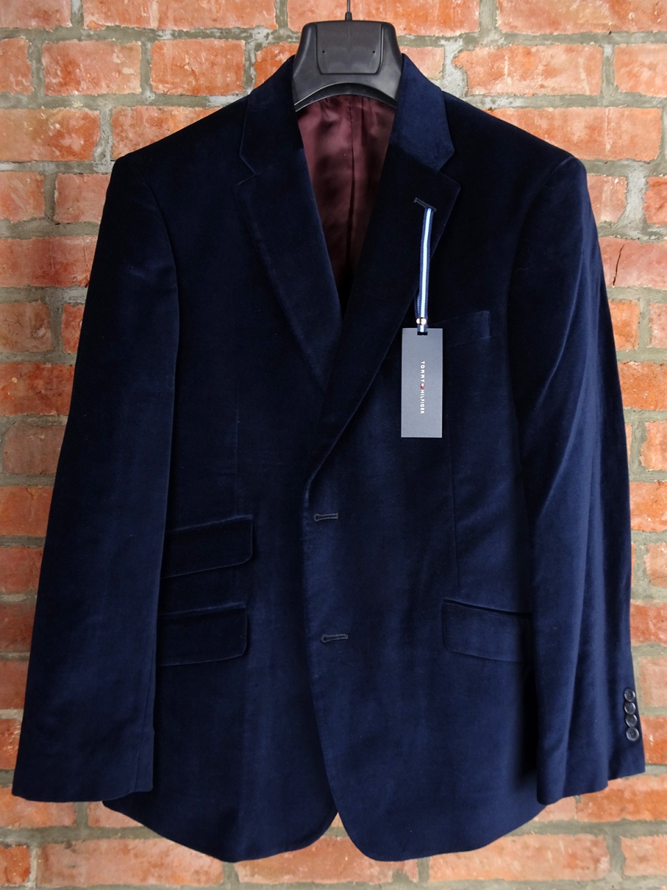 TOMMY HILFIGER стильный мужской пиджак, синий бархат, размер 42S (наш 52)!